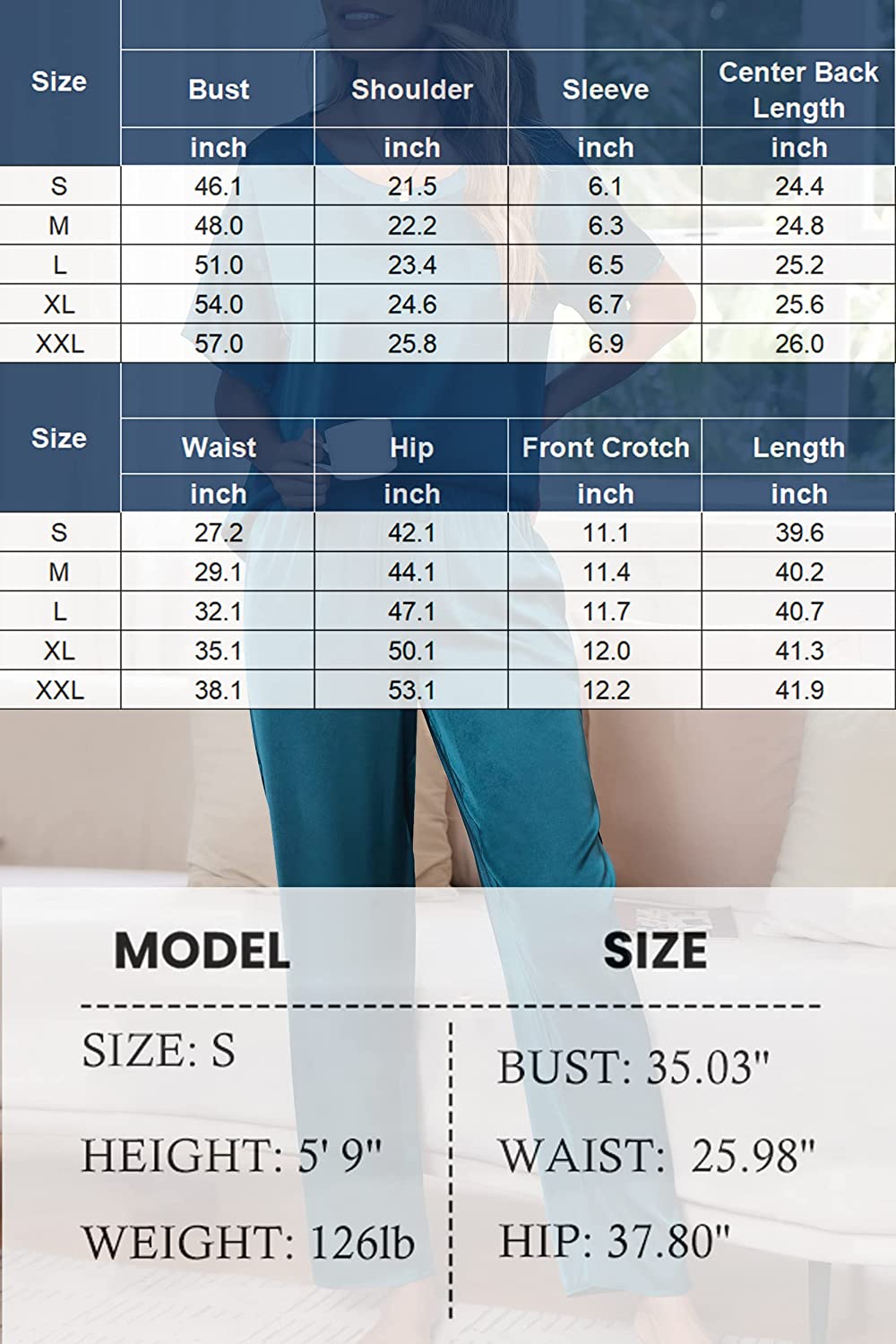 Bottoms: elastic waistband, two pockets, and relaxed fit wide legs long pants.