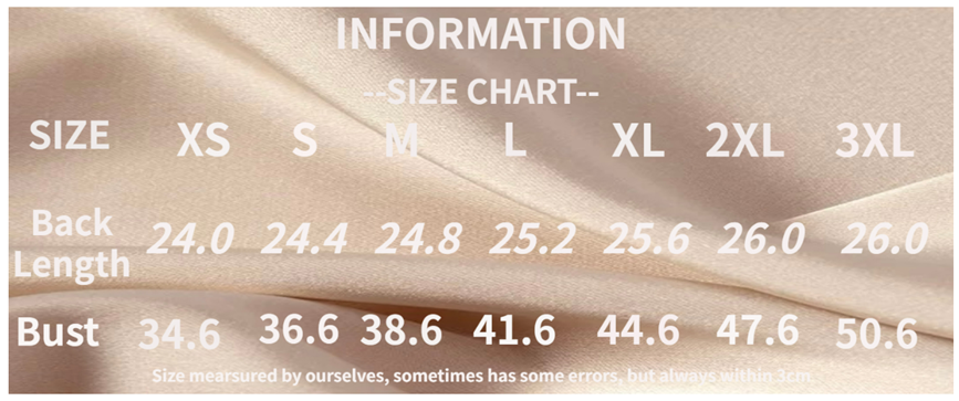 • Size: This classic satin sleeveless tank top is available in five sizes S-XXL. Please refer to the size information in the picture description to choose your size. Colors may be lighter or darker due to different computer monitors.