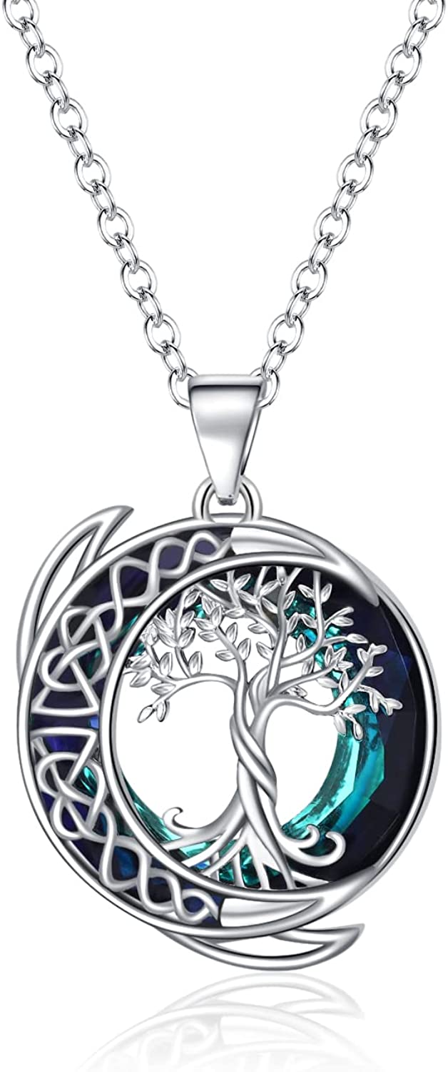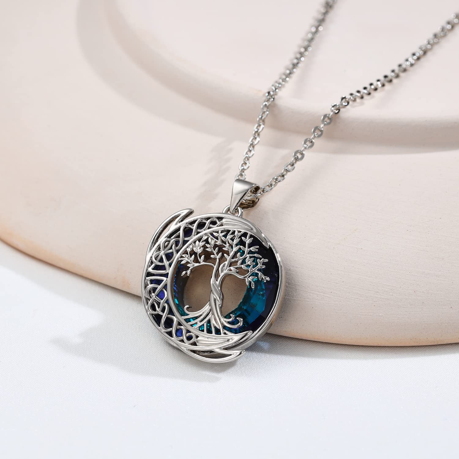 Kattepote Moon Tree of Life Necklace S925 Sterling Silver Crystal Tree of Life Pendant Necklace Celtic Knot Full Moon Tree of Life Women's Jewellery Gift