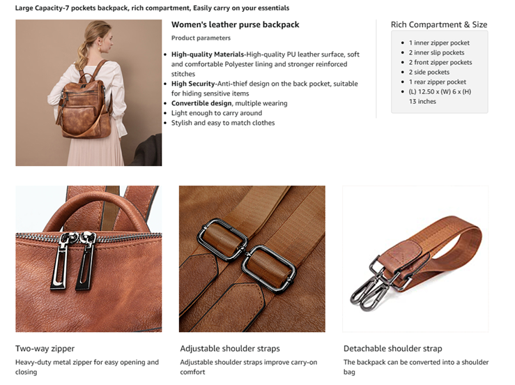 【Construction & Large Capacity】This backpack purse for women adopts 1 inner zipper pocket, 2 inner slip pockets, 2 front zipper pockets, 2 side pockets and 1 rear zipper pocket, deep pockets and back anti-theft design increase the security of personal items. Multiple pockets can keep your things well organized.