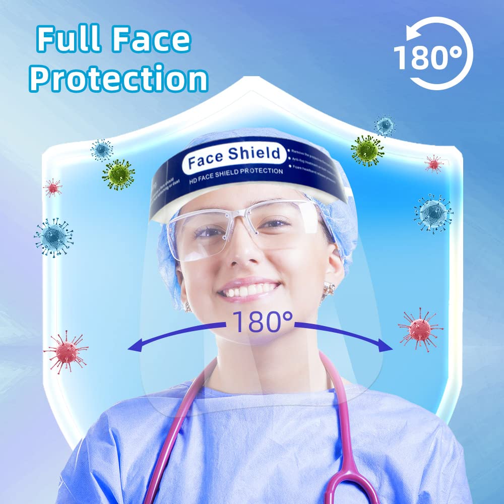 180 °Face Protection:The protective full face shield can achieve 180° face protection which effectively isolates saliva and protect your face from spray, splatter, droplet, dust, oil and smoke and so on.Anti fog face shield for glasses wearers.