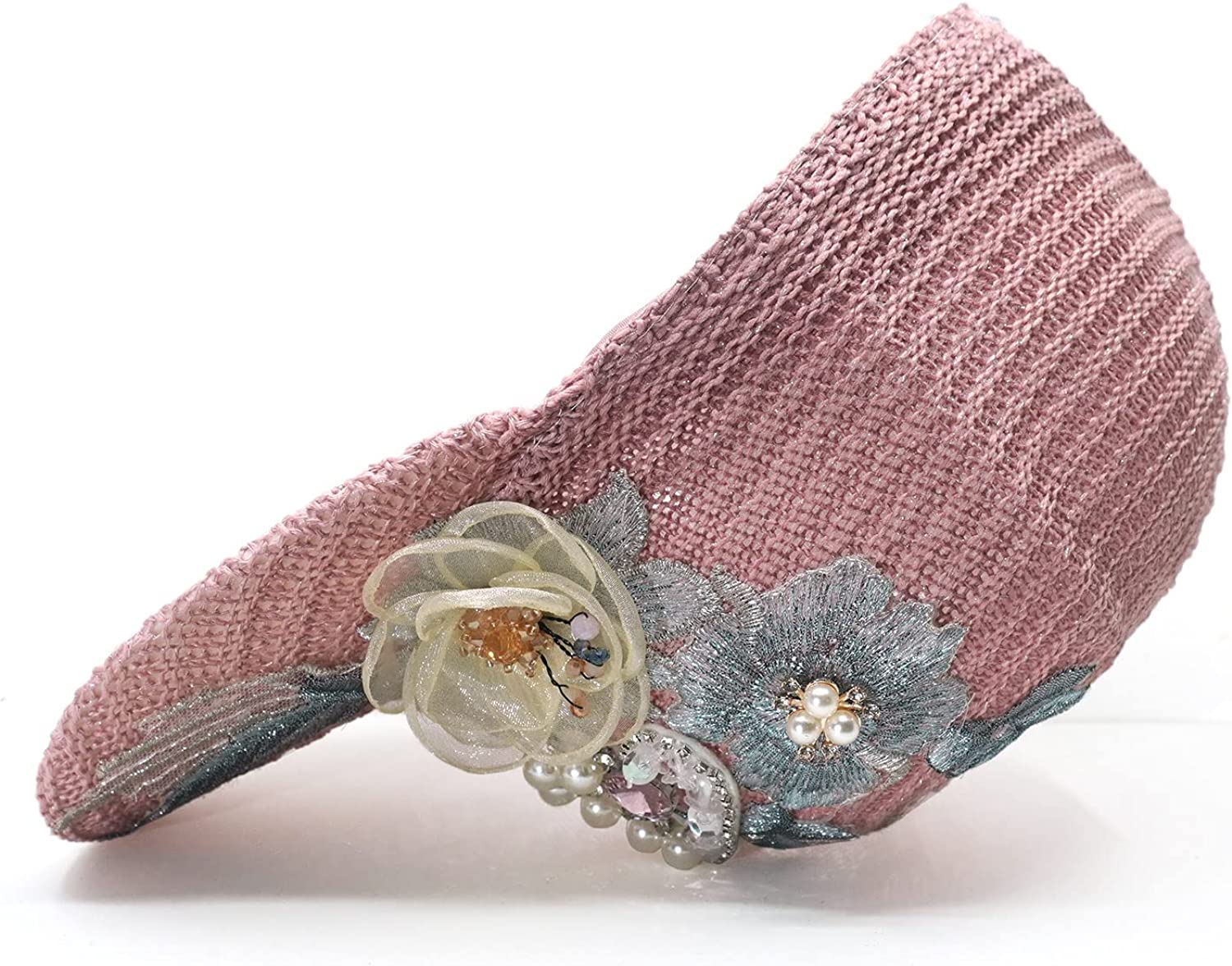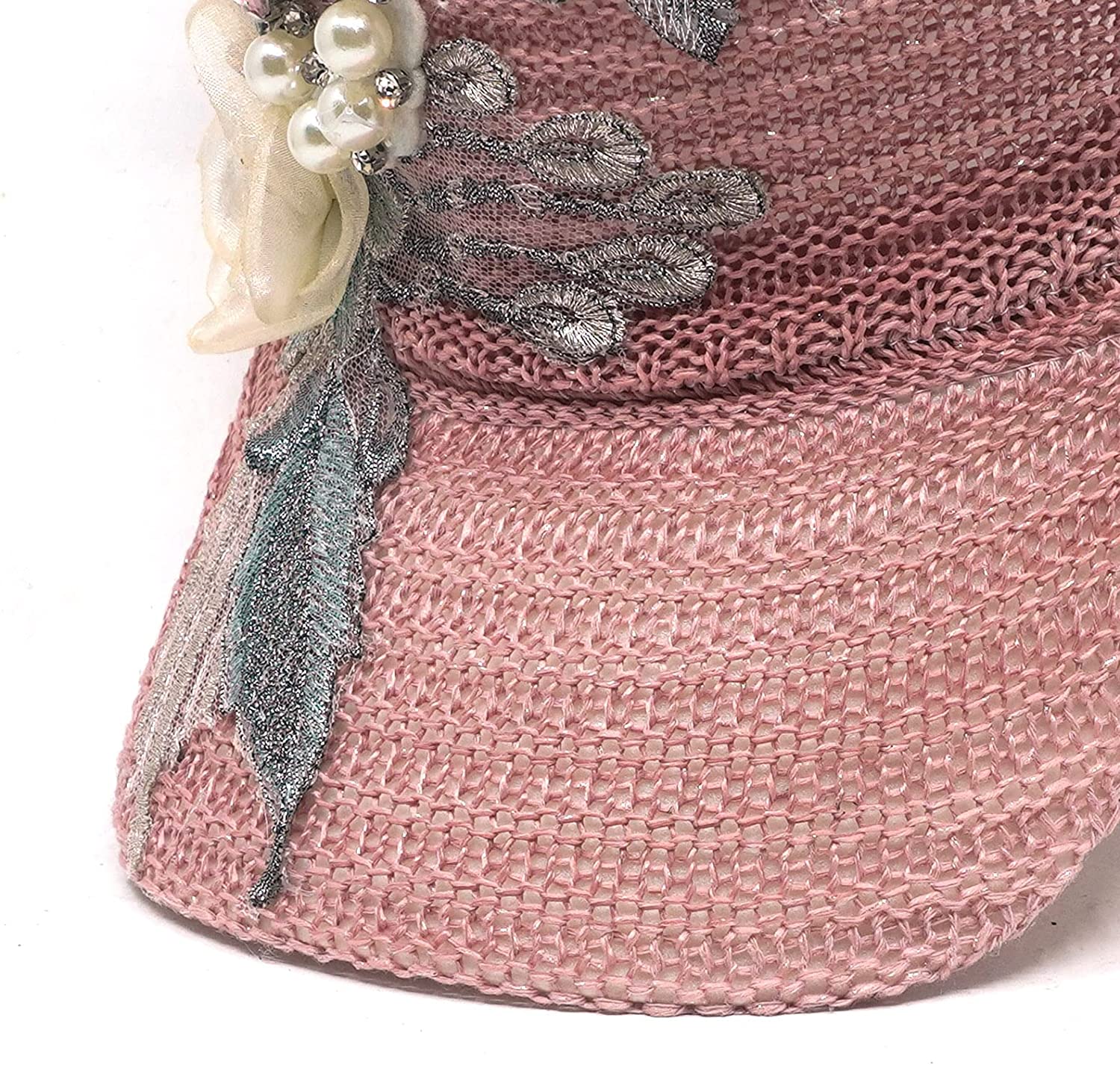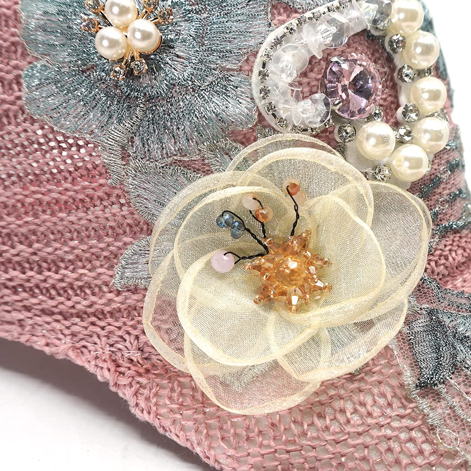 Breathable Baseball Cap Women Trendy Handmade 3D Flower Sun Hat with Crystal and Pearls Adjustable Trucker Hat