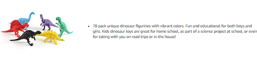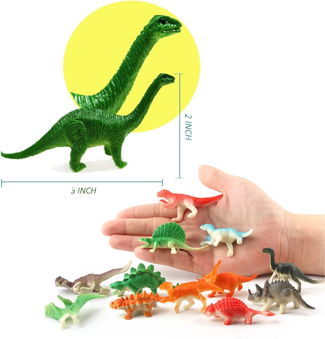 • These mini dinosaurs measure an average of 2.5" from head to tail (may be a diagonal measurement depending on dinosaur). These dinosaurs are tested and approved by real kids (and adults and scientists as well). Our dinosaurs are the perfect size for party favors, birthday party games, educational displays, decoration, or rewards! Dinosaurs are designed with high durability in mind, and are built to withstand rough and hands-on indoor and outdoor play!