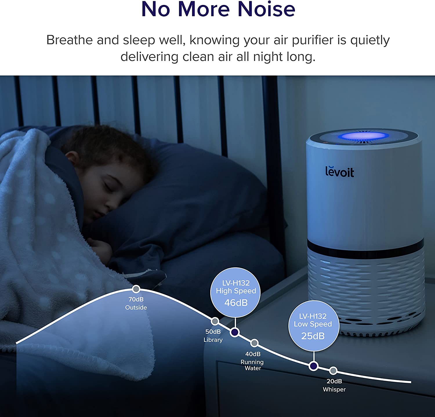 • WHISPER-QUIET: Trying to sleep with rattling or loud humming noises coming from your air purifier. With noise levels as low as 25dB, this air purifier is so quiet, you can run it throughout the night and sleep soundly