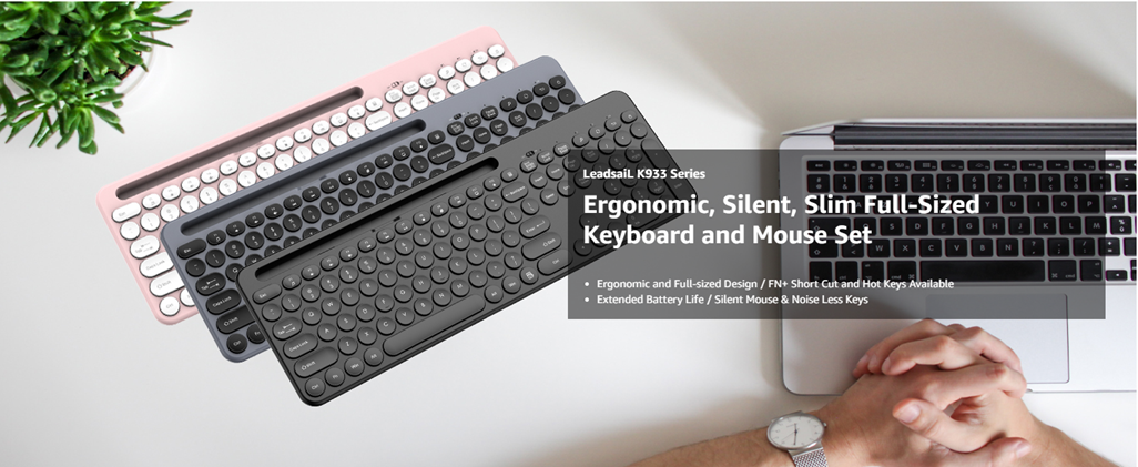 - 【Ergonomic and Full-sized Design】: The wireless keyboard's ultra thin with low profile design delivers comfort and space saving on your desk. The familiar full-sized US layout will reduce your typo and the keys locates the place where you want them to. Contoured to fit in both hands, LeadsaiL cordless mouse is designed to deliver hours of comfortable use throughout the workday.