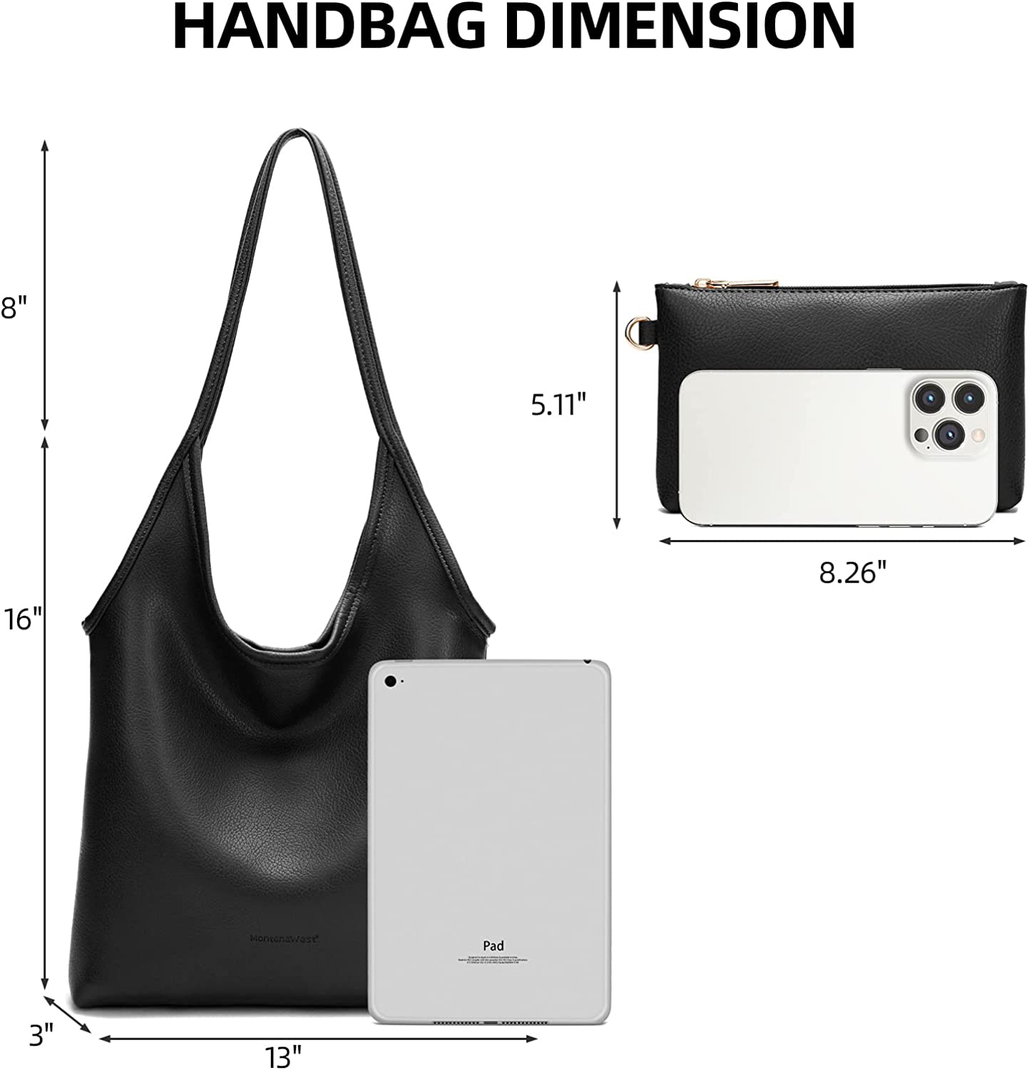 Montana West black hobo bag exudes everyday elegance with its flowing lines and soft vegan leather body. With a spacious interior to fit your essentials, plus an extra zipper pouch. This women's shoulder bag is designed for uncompromising comfort and good looks.
