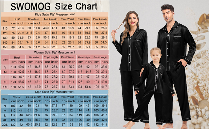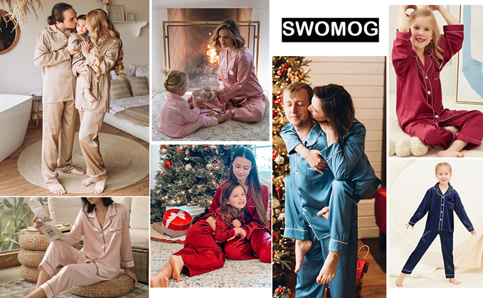 • 【Great Value】- We want you and your family to love our Holiday Family Matching Pajamas. Find matching items for all the family. All of the silk satin pajamas set is sustainably sourced and always will be. SWOMOG Family Pajamas Collection: easy-to-wear wardrobe staples that combine classic and contemporary styles.