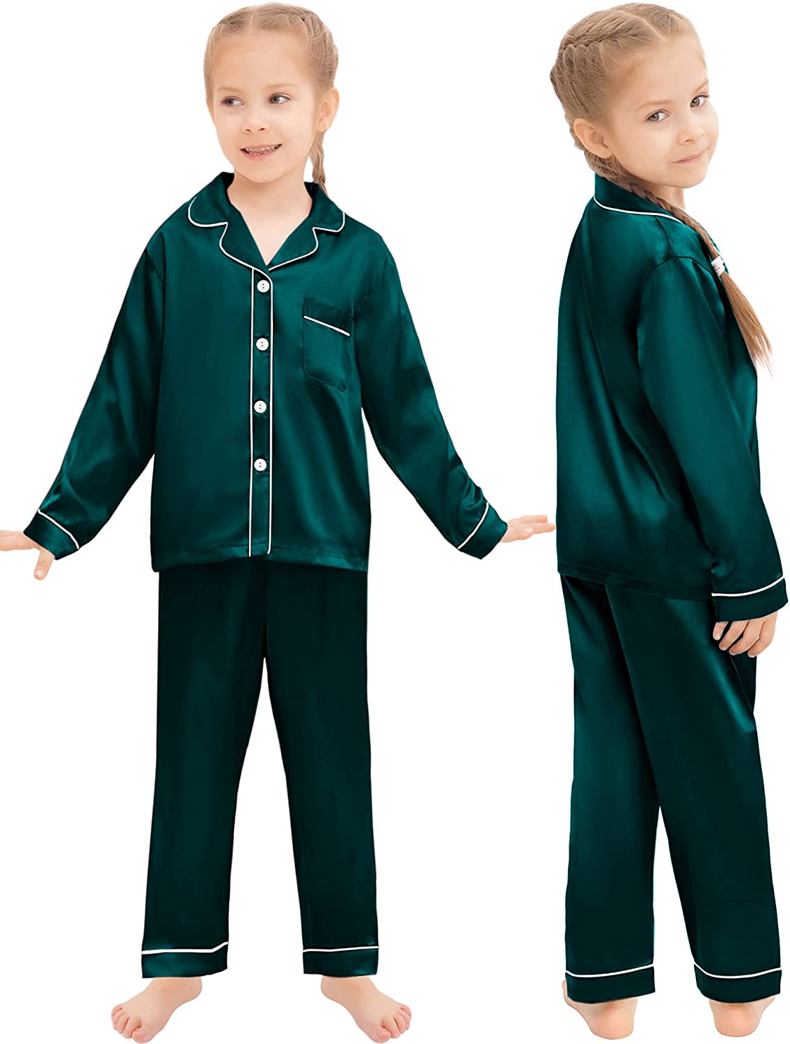 SWOMOG Family Matching Silk Satin Pajamas Button Down Sleepwear Long Sleeve Silky Nightwear 2 Pcs Pj Set