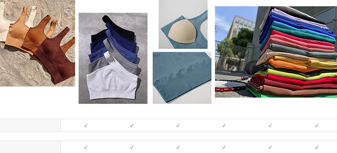 - 90% Nylon+10% Spandex. Ribbed Scoop Neck Sports Bra(padded bra)+One Shoulder Sports Tops(no padded bra)+Ribbed Shorts