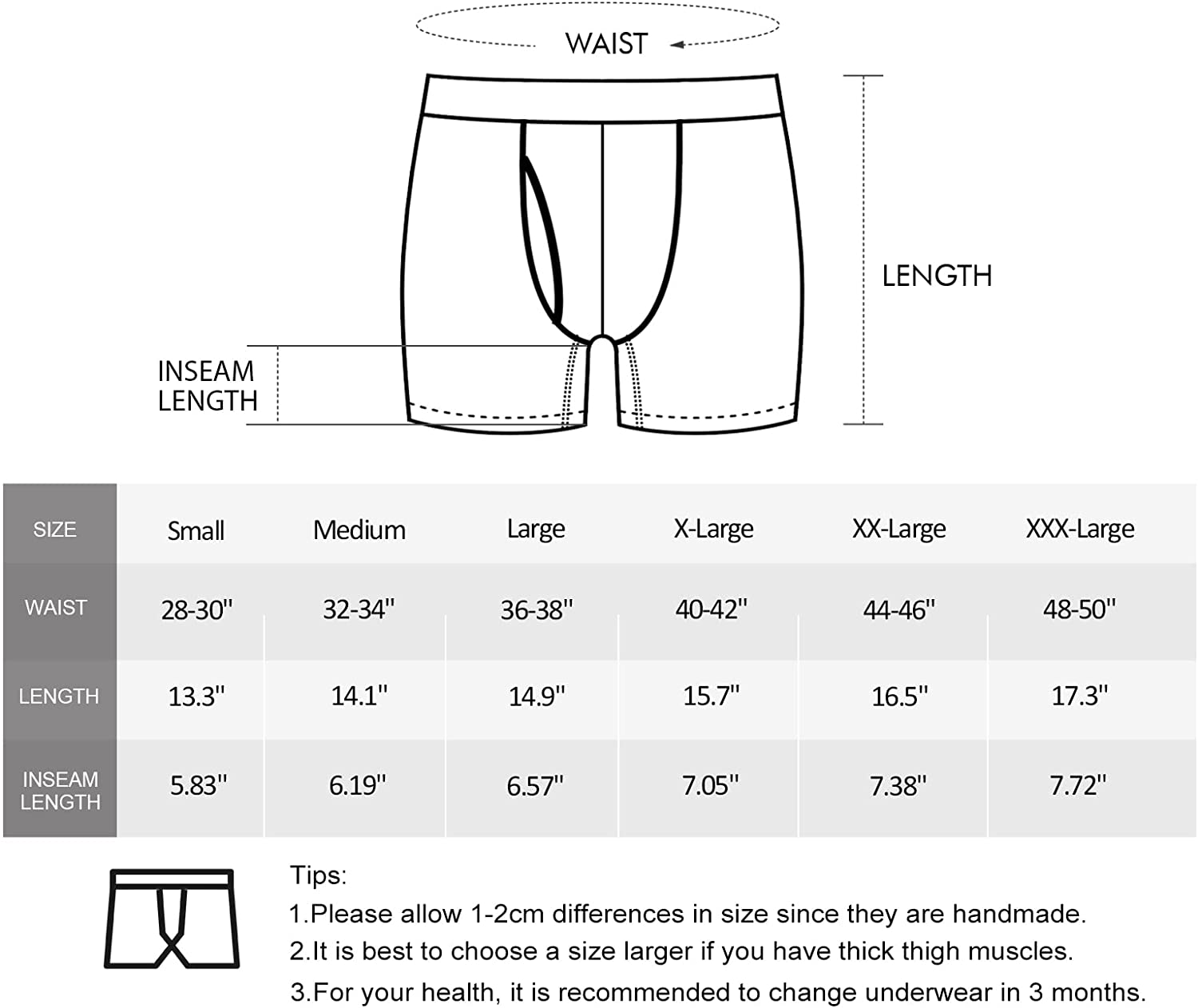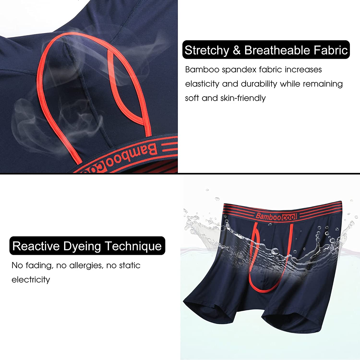 【NO-RIDE-UP LEG,BREATHABLE】: This fabric is 92% Bamboo Viscose & 8% Spandex, which is a lightweight, breathable, stretchy pair that won't fade or shrink fabric. Bamboo fabric has a natural moisture absorption and perspiration function, its air permeability is 3 times that of cotton.This is a kind of long leg boxer underwear.The design of lengthen the leg will more securely wrap the important parts of men, and effectively reduce the friction between the legs.
