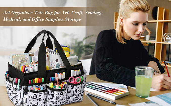 Craft Organizer Tote Bag, Art Caddy Organizer with Handles,Multi-Functional Craft Caddy for Sewing & Scrapbooking Supplies,Travel Art Box JOSIVIKY (White)