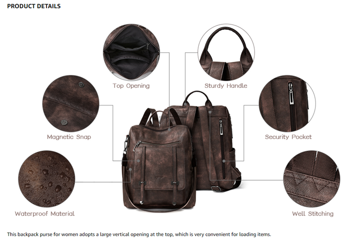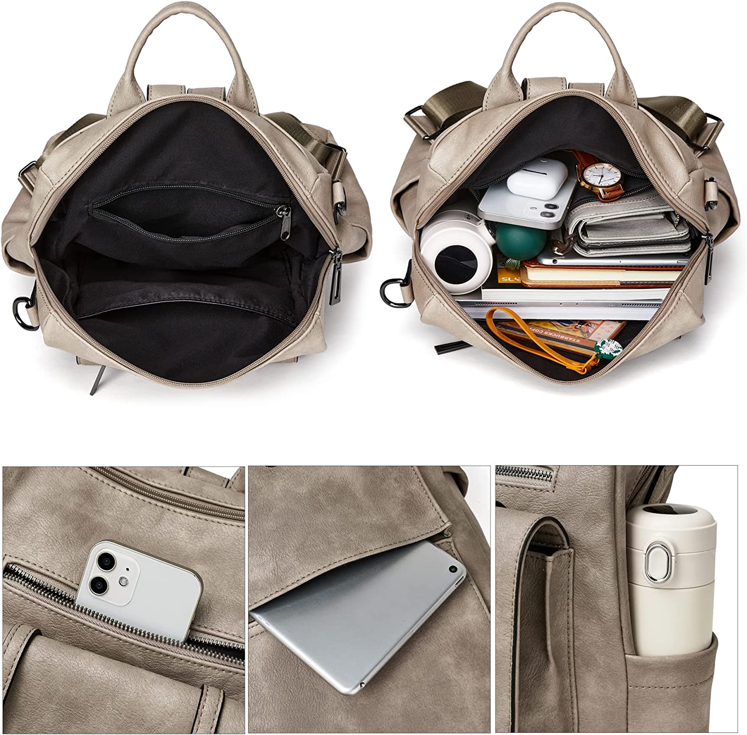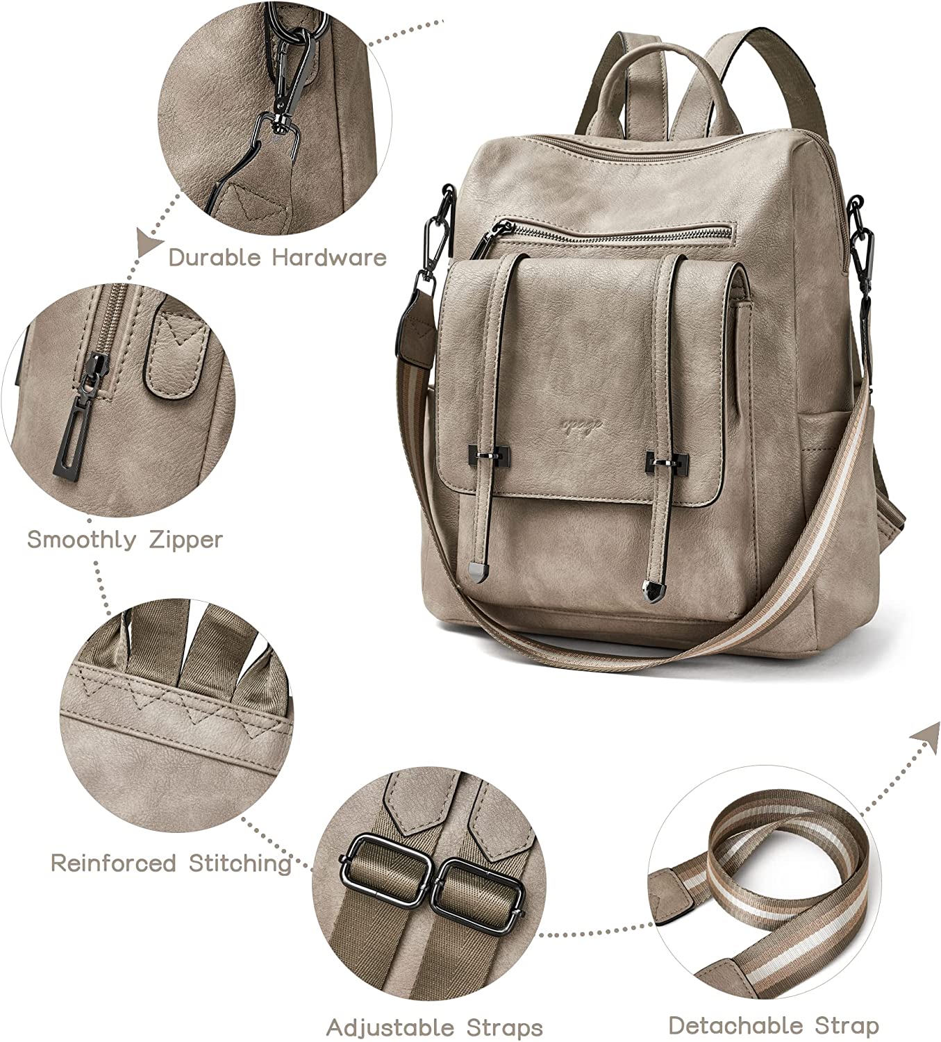 【HIGH-QUALITY MATERIAL】The backpack purse for women is made of sturdy and soft PU leather, zippers slide nicely and straps are very durable, comfortable and good quality. The snaps are magnetic and all the stitching has been done well.