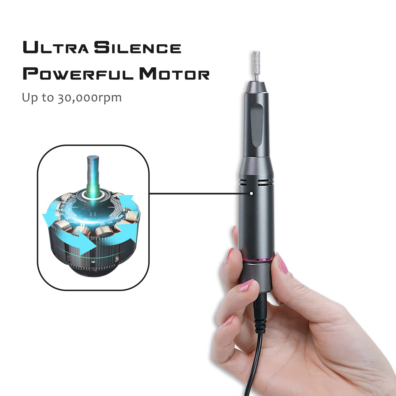 Fuegobird Electric Nail Drill Kit, Portable USB Nail File Tool for Acrylic Gel Nails, Professional Manicure Pedicure Efile Machine for Home and Salon, 30000 RPM with LCD Display Control