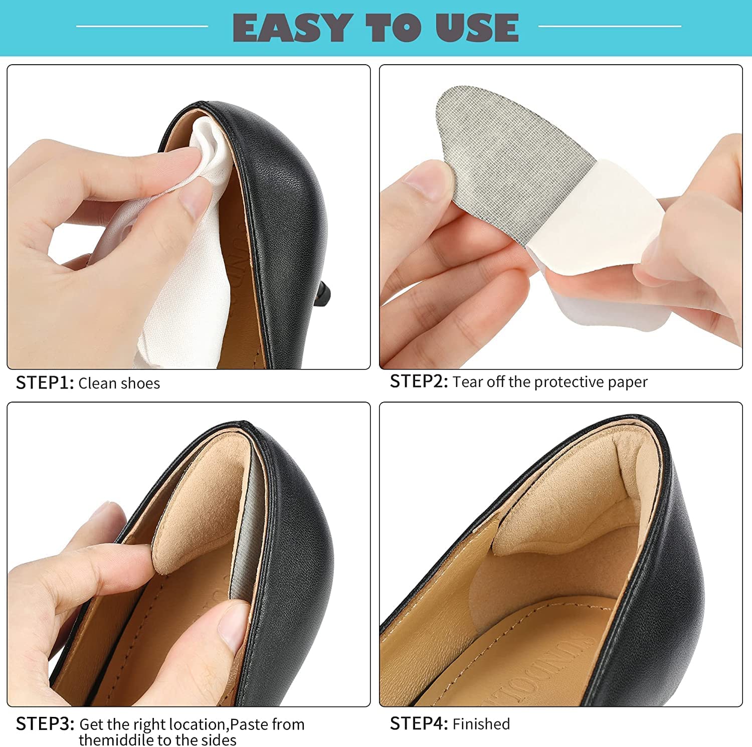 Widely Application: these heel cushions fit for many shoes such as high-heels, leather shoes, casual shoes, flats etc; they are suitable for men and women. They are applicable to new shoes, old shoes and slightly bigger shoes, they suitable for all people.
