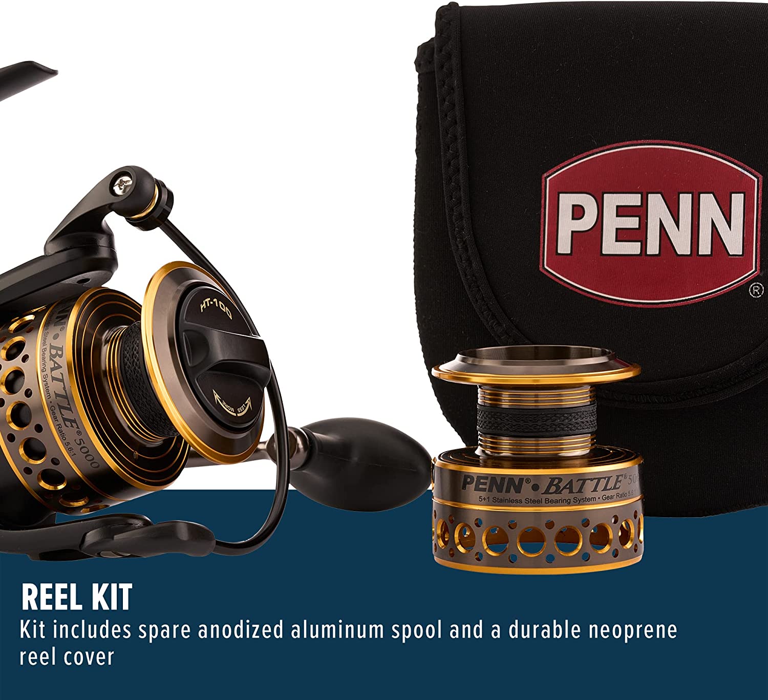 Arm yourself for the most punishing saltwater battles with the Penn Battle II Spinning Fishing Reel. Crafted from durable materials and packed with fish fighting features, this saltwater reel is engineered to catch fish year after year. From the full metal body, sideplate, and rotor to the five sealed stainless steel ball bearings, each component is designed to help you land your catch. The reel's HT 100 Versa Drag carbon fiber drag system leverages both sides of each drag washer to provide maximum drag, and its instant anti reverse bearing eliminates pullback so you reel without interruption. Additionally, the drag washers are treated with a proprietary grease to ensure long lasting performance. Suitable for use with Berkley or Spiderwire Superline, the spool is fitted with a rubber gasket that prevents the Superline from slipping under pressure meaning anglers can use braided line without a monofilament backing. And thanks to its line capacity rings, the spool displays at a glance how much line is remaining.