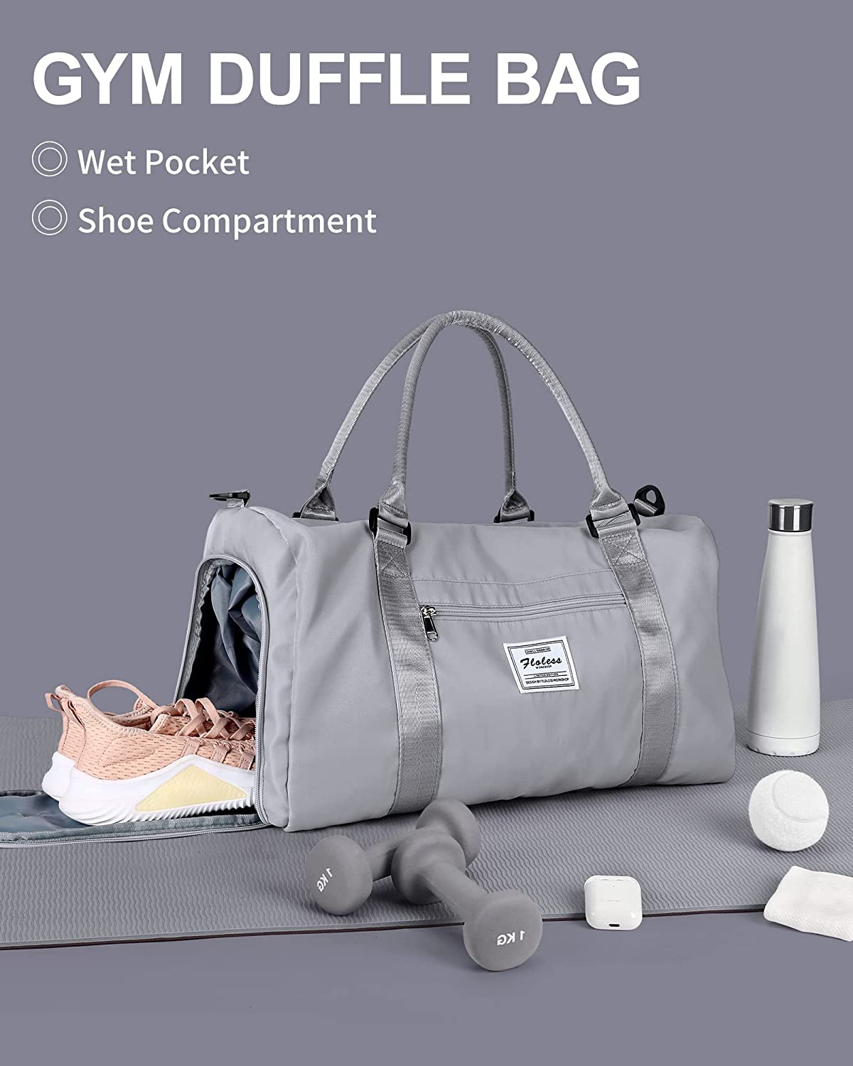 Gym Bag Womens Mens with Shoes Compartment and Wet Pocket,Travel Duffel Bag for Women for Plane,Sport Gym Tote Bags Swimming Yoga,Small Waterproof Weekend Overnight Bag Carry on Bag Hospital Holdalls
