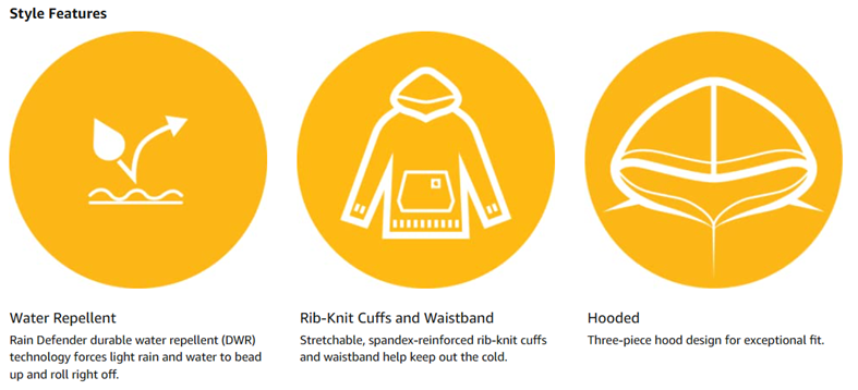 - Stretchable, spandex-reinforced rib-knit cuffs and waistband