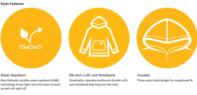 - Stretchable, spandex-reinforced rib-knit cuffs and waistband