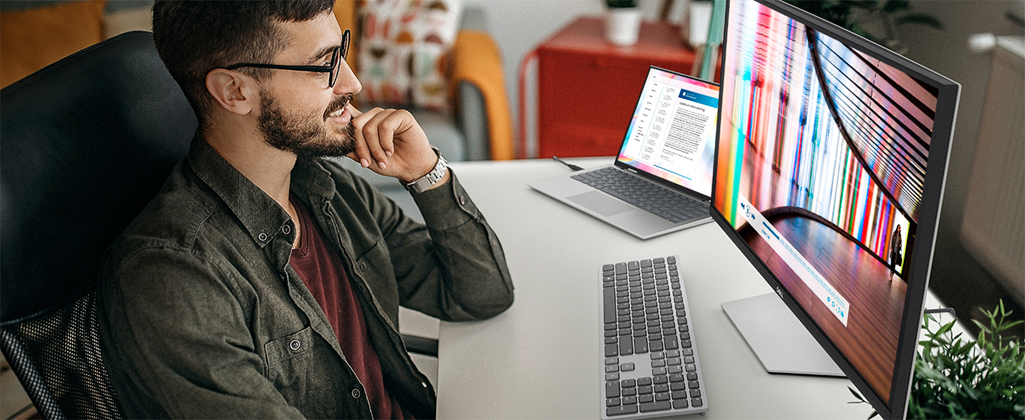 A stunning setup: Bring modern elegance to any space with our stunning new Platinum Silver finish and a subtle textured back that gives your monitor a unique look.