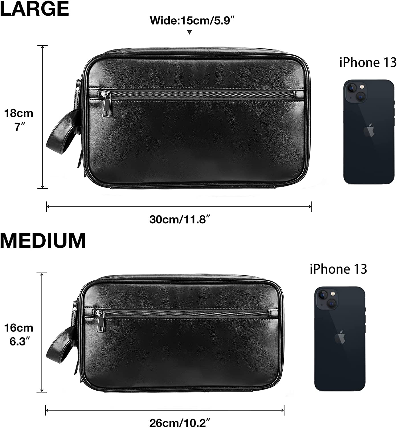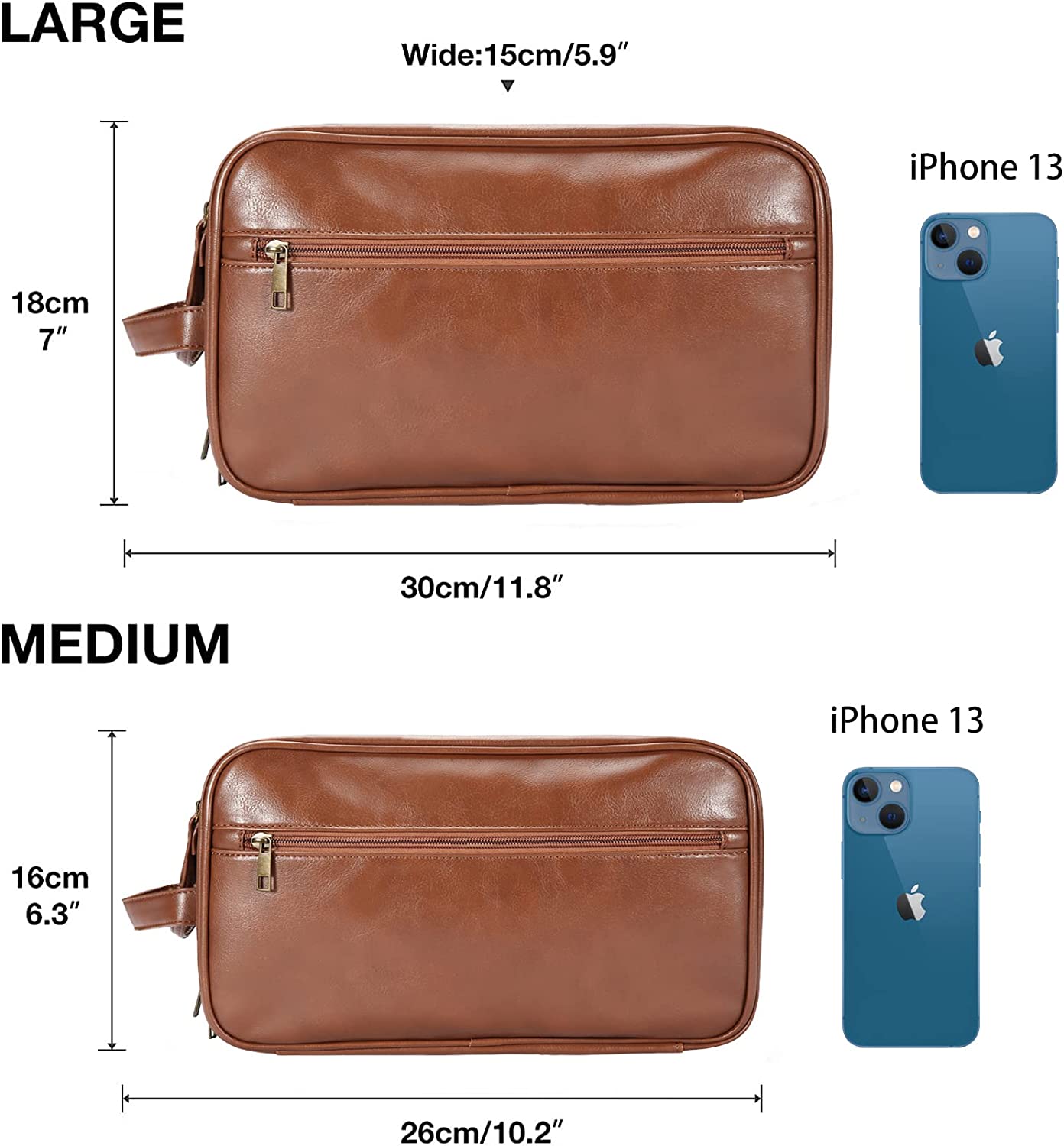 HANDMADE TO DURABLE: A travel toiletry bag that removes all your worries, crafted from eco-leather with a glossy finish, sturdy zipper and a padded, quick-drying, moisture-wicking lining. The waterproof toiletry bag and bathroom shaving bag are easy to wipe clean, the main compartment has a leak-proof lining to prevent liquid spills, the soft yet strong waterproof material helps the leather wash bag resist common bathroom spills, making it a Your reliable travel and home companion.