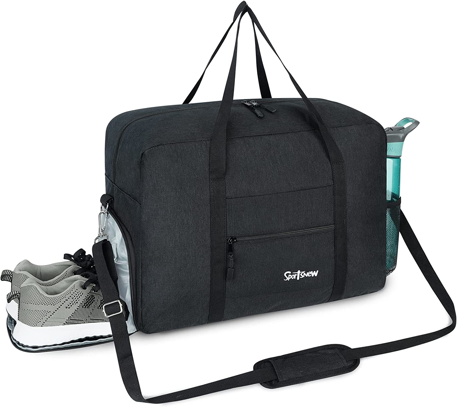• Shoes & Water Bottle Pockets Design: This sports duffel features a separated zipper compartment on the left side for shoes, laundry or dirty gear storage. Two slip-in mesh pockets on the right side are each sized to fit a water bottle( 800ml)