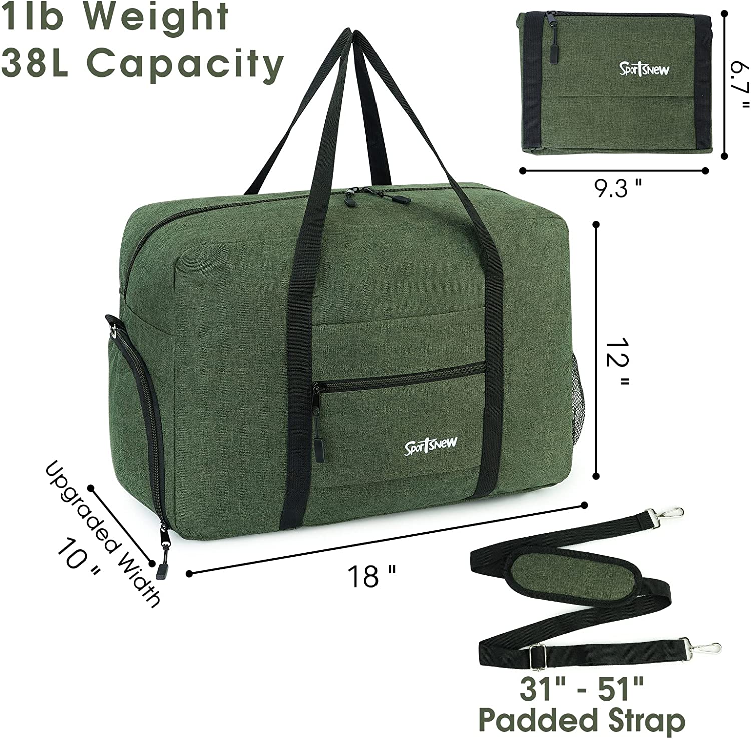 • Size & Durable Construction: Dimensions when full: 19” x 12” x 10” with 38L capacity, folds flat 13” x 10” x 1.2”, weights only 1lbs, which is 30% lighter than traditional gym bag. Made with durable, water-resistant material with premium zippers. It features dual handles and an adjustable, detachable and padded shoulder strap for total comfort. The sturdy polyester body makes this bag ideal for long-term use