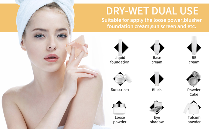 【Widely Applicable】Soft Makeup sponge is suitable for liquid foundation, barrier cream, BB cream, sunscreen, cushion, blush for wet use; Dry powder products such as pressed powder, loose powder, eye shadow, and honey powder for dry use.