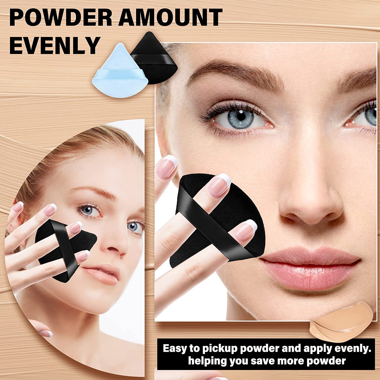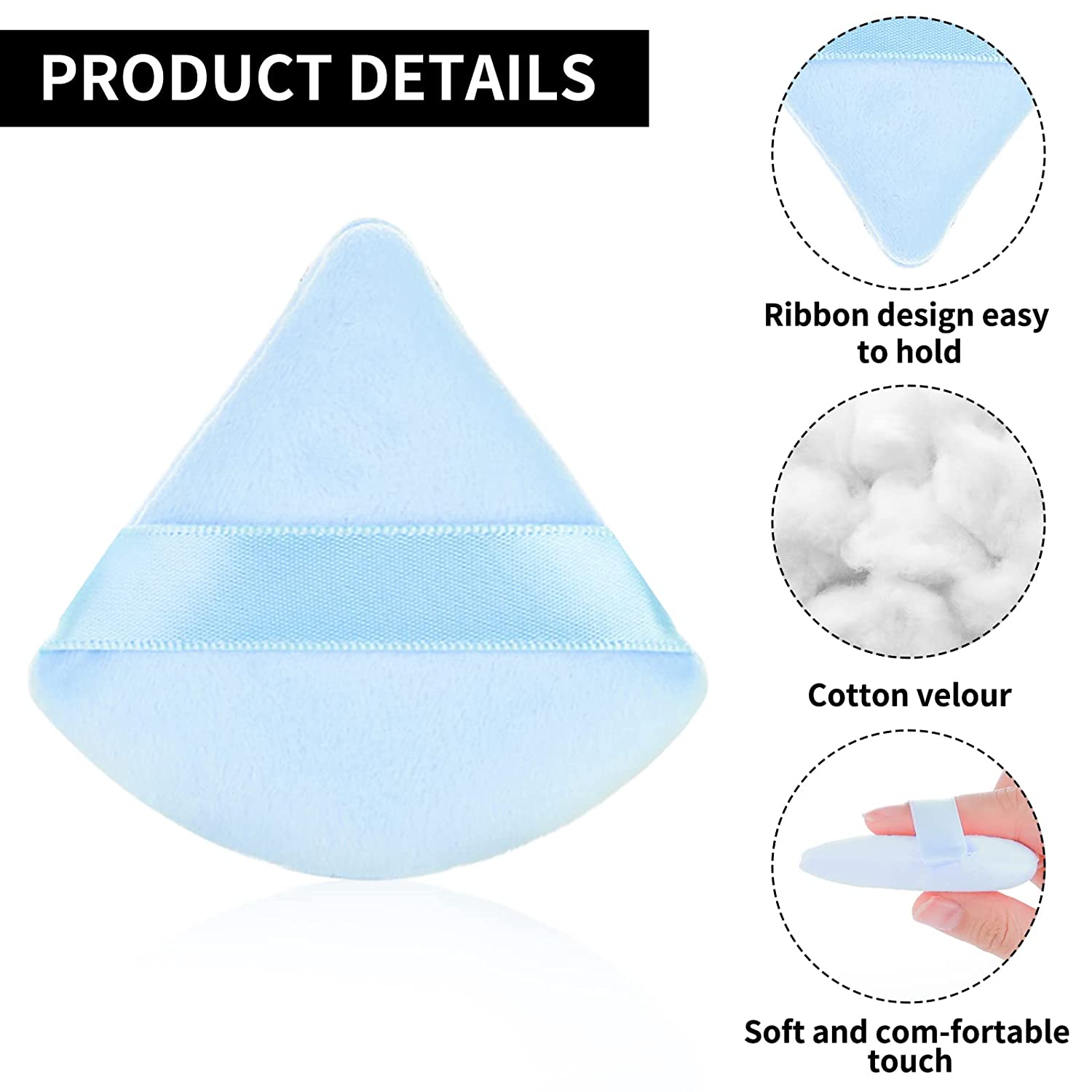 【Suitble Size】Our triangle body powder puff, each pure powder puff measures about 7cm, the normal size can fit your hand well, each makeup puff comes with 1 strap for you to hold well and easier to use the powder applicator, the triangle shape makes the makeup on T-zone easier.