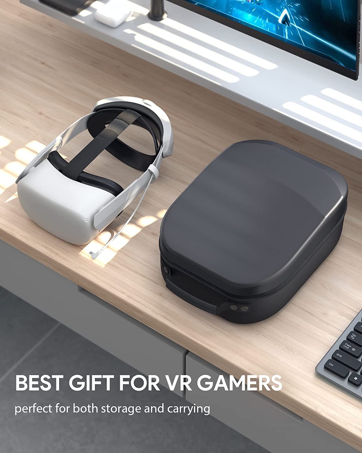 • ☑️Shockproof & Waterproof - The top cover of the storage case is made of PU material, making it truly and completely waterproof. The button cover is made of durable EVA material, which is hard, shock, and dust resistant. Provides all-around protection for your Oculus Quest 2.