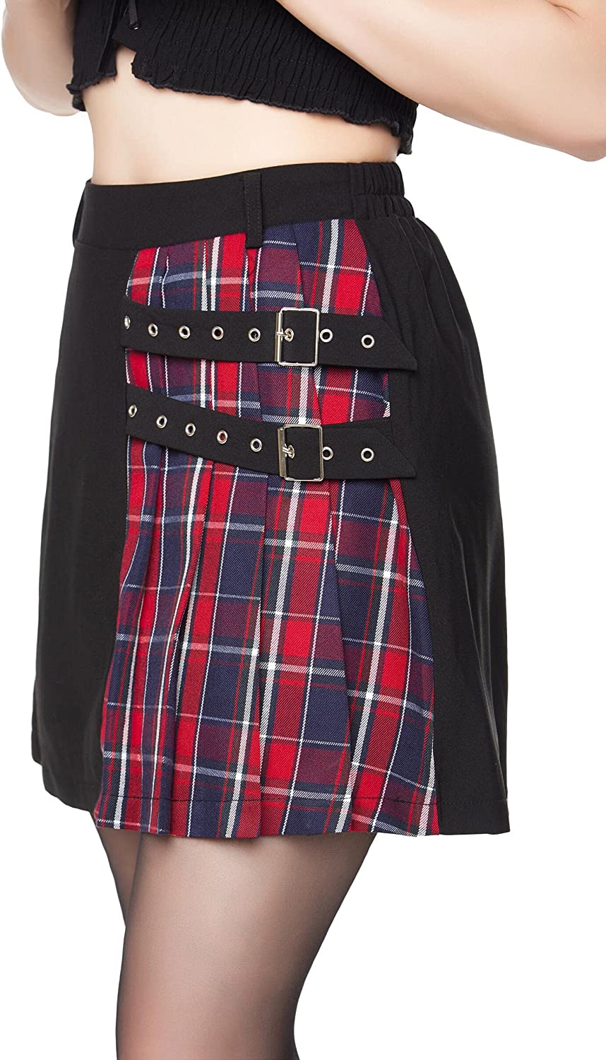 This gothic plaid pleated skirt is perfect for Goth girls, school girls. Accessorize with black knee-high socks, a shirt or cropped top, boots, heels or flats. Also suitable for everyday wear, birthday parties, raves, etc. Suitable for a variety of dark styles, it can be Harajuku skirt, punk rock skirt, emo skirt, goth skirt, alt skirt.