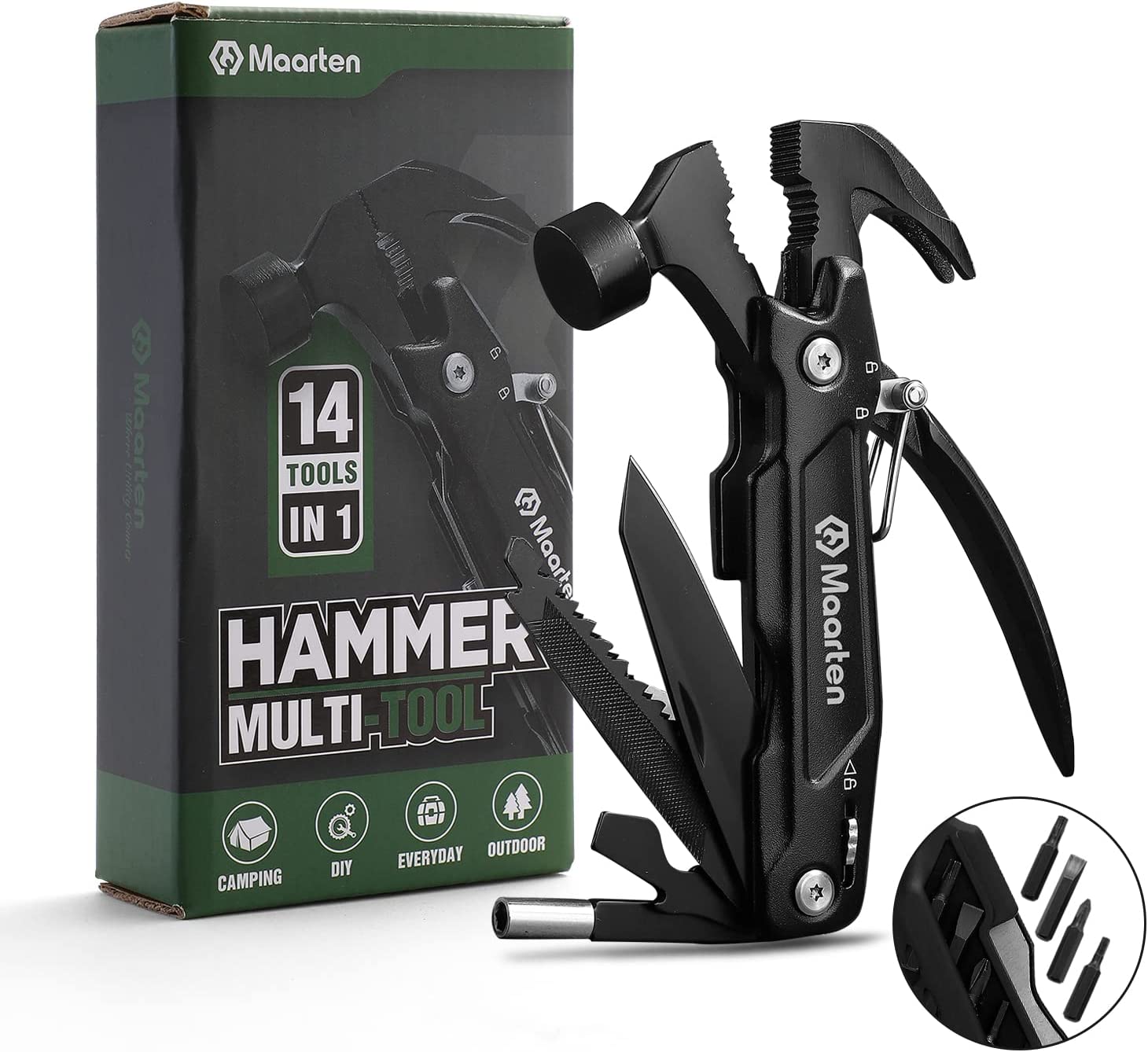 Gifts for Dad from Daughter Son Hammer Multitool Camping Accessories, 14 in 1 Hammer Outdoor Survival Tools for Men, Cool Gadgets Unique Gifts, Christmas Present Stocking Stuffer