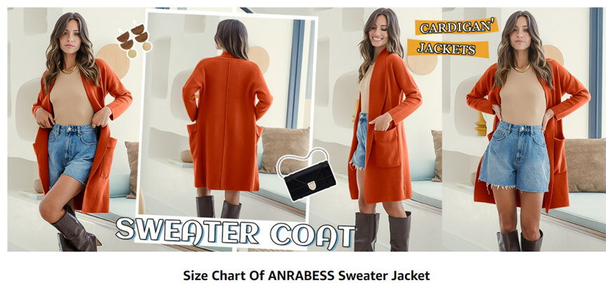ANRABESS Women's Casual Long Sleeve Draped Open Front Knit Pockets Long Cardigan Jackets Sweater