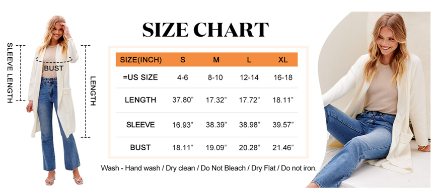 • Features - draped open front,pockets,long sleeve,thigh length cardigan,knitted,relaxed fit.