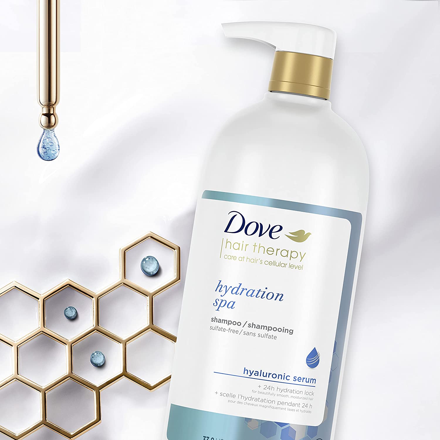 Wondering how to get soft, smooth hair? Shampoo plays a big part in how your hair looks and feels – and we’ve got just the thing. Treat your hair to a spa day from home and give it the nourishment it deserves with Dove Hair Therapy Hydration Spa Shampoo and Conditioner. Perfect for a dose of hair hydration, this hydrating shampoo for dry hair is formulated with hyaluronic serum to keep your hair feeling beautifully soft, smooth and nourished when used alongside our Hydration Spa Conditioner. And that’s not all, it leaves your scalp feeling refreshed, too. Specially created to care for your hair at a cellular level*, this moisturizing shampoo is made with potent moisturizers and nourishing ingredients. When used with our Hydration Spa Conditioner, it helps you give your hair the care it needs, exactly where it needs it. Plus, if you’re looking for a shampoo to moisturize hair, our 24-hour hydration lock does just that. Simply smooth it on and enjoy a spa-worthy treatment every time you shower. Perfect for: Expert hair care: Our Hydration Spa Shampoo works at your hair’s cellular level*, using expert care to keep hair moisturized. Formulated with hyaluronic serum and potent moisturizers, you’ll be left with hair that feels soft, smooth and nourished after just one wash, when used with our Hydration Spa Conditioner. Hair hydration: This hydrating shampoo uses 24-hour hydration lock technology to keep hair moisturized all day long, so dryness can become a thing of the past. A spa-like experience: Our Hydration Spa Shampoo blends expert care with the gentle Dove formulas you know and love to leave you with nourished, healthy-looking hair and a refreshed scalp – all from the comfort of your home. Cruelty-free hair care: Globally, Dove does not test on animals. Our Hair Therapy Hydration Spa range carries the PETA cruelty-free logo for added peace of mind. How to use: Enjoy this shampoo as part of your shower routine.
