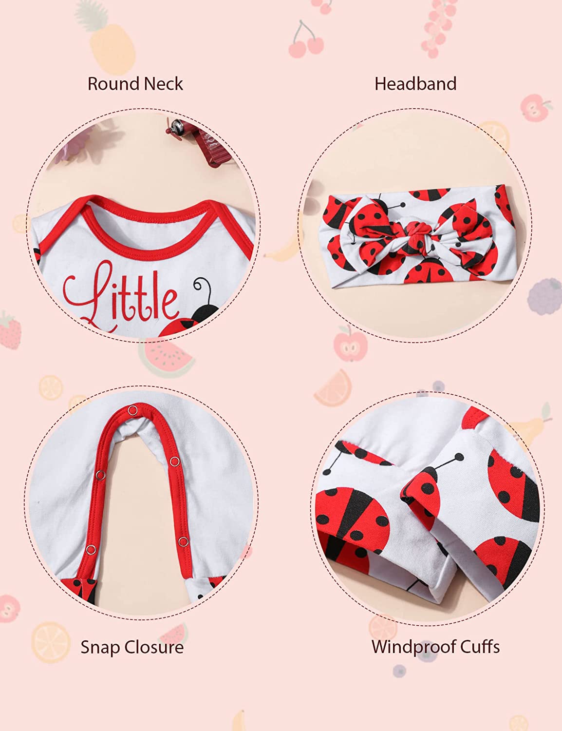 • ❤️【Cute Design】The infant girl clothes applys super cute elements and colors, such as leopard, flower, ladybug, cows, flamingo, tie-dye, etc. Our newborn baby girl clothes bring the lovely and happy atmosphere to the baby and the family, let your baby grow in love.