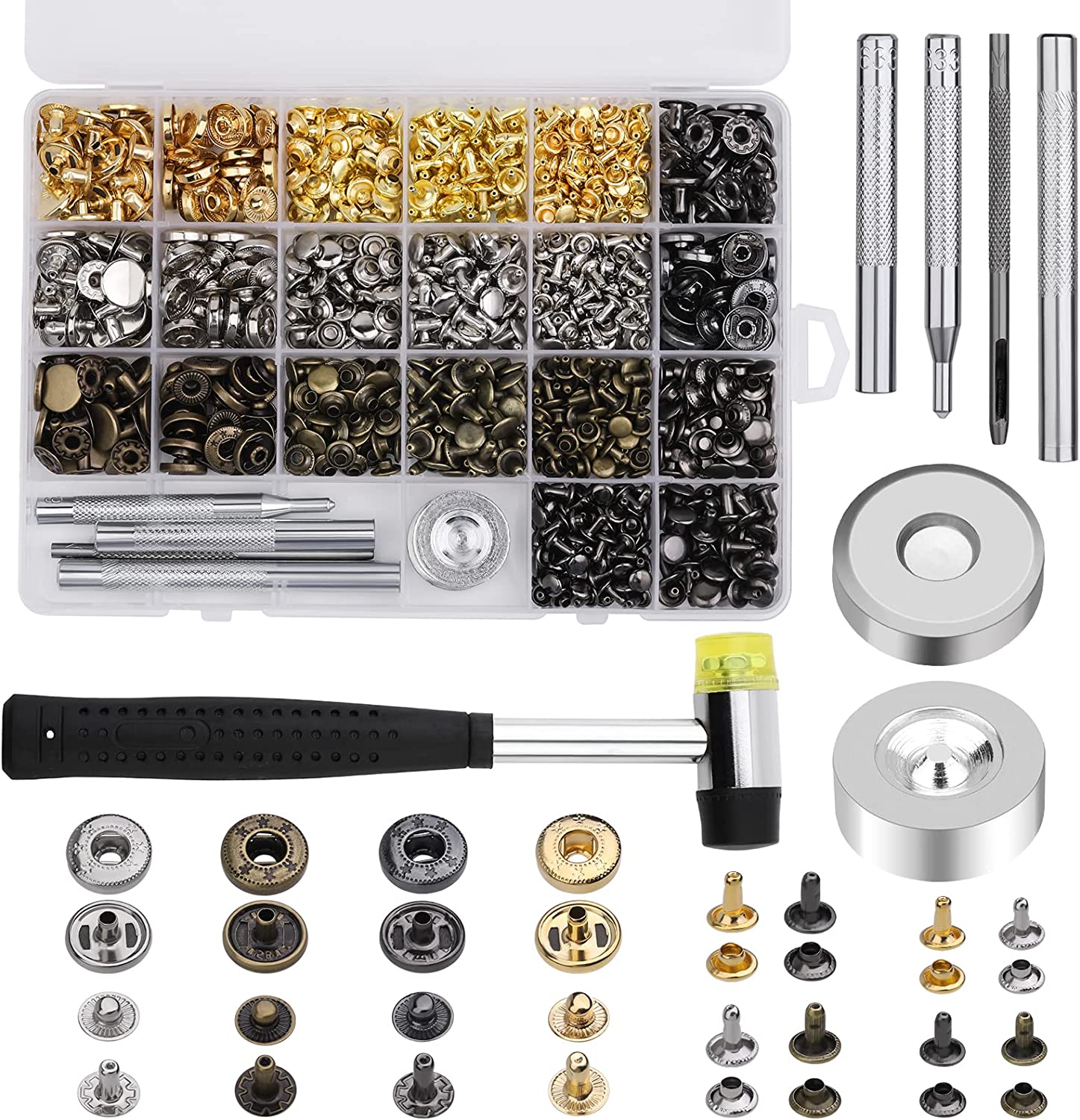 • ★Rich Combination Kit: You will get 60 pcs of 4 different colors of leather snap buttons and 320 pcs of 2 sizes of leather rivets all at once. It is also equipped with a double-sided nylon hammer, 5pcs fixing tools, such as leather anti-slip punch, rivet stick, round head snap button, to further help you easily complete leather DIY projects.