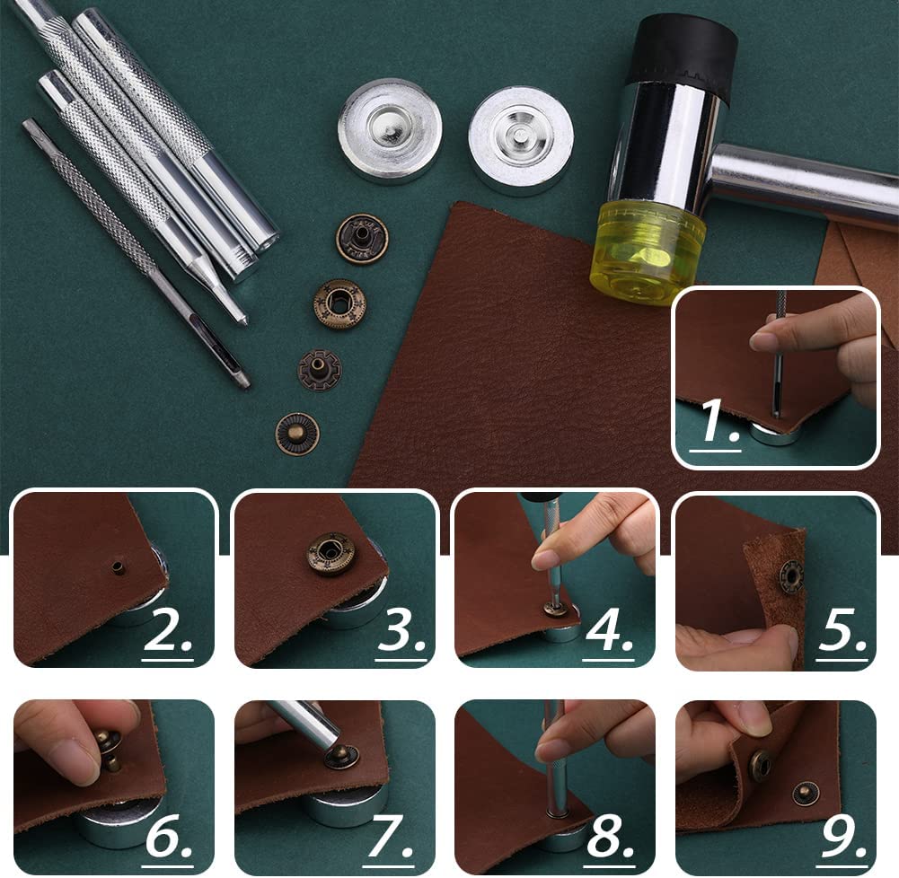 • ★Make Good Use: Whether you're an expert or a beginner, this snap and leather rivet set will be perfect for leather fixing works, and take advantage of its accessories, the leather double-sided hammer with a soft and comfortable handle, can save a lot of effort.