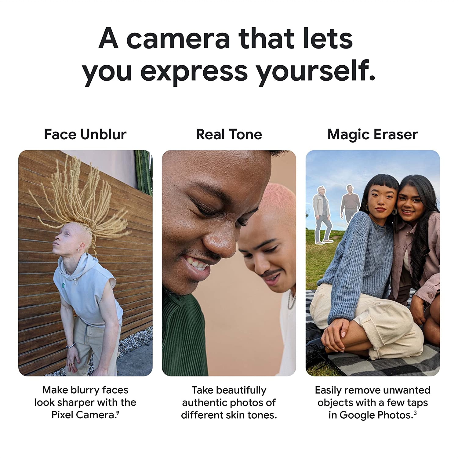 Meet Pixel 6a, the more affordable Google phone that adapts to you.[8] Powered by Google Tensor, it’s super fast and secure, with an amazing battery and camera. And it’s an unlocked Android smartphone, so you can choose the data plan and carrier that work for you.[1] LEGAL [1]Works with all major carriers. 5G service is carrier dependent. Requires a 5G data plan (sold separately). 5G service not available on all carrier networks or in all areas. Contact carrier for details. 5G service, speed and performance depend on many factors, including carrier network capabilities and signal strength. Actual results may vary. Some features not available in all areas. Data rates may apply. See g.co/pixel/networkinfo for info. [2]Estimated battery life based on testing using a median Pixel user battery usage profile across a mix of talk, data, standby, and use of other features. Average battery life during testing was approximately 29 hours. Battery life depends upon many factors and usage of certain features will decrease battery life. Battery testing conducted in California in early 2022 on pre-production hardware and software, using default settings. Battery testing conducted using Sub-6 GHz non-standalone 5G (ENDC) connectivity. Actual battery life may be lower. [3]Requires Google Photos app. Magic Eraser may not work on all image elements. [4]Wired charging rates up to 18W based on use of Google 30W USB-C® or Google 18W USB-C® Charger plugged into a wall outlet. Actual results may be slower. Adapters sold separately. Compatible with USB PD 3.0 PPS adapters. [5]Not available in all languages or countries. Not available on all media or apps. See g.co/pixel/livetranslate for more information. Translation may not be instantaneous. 3Your Pixel will receive feature drops during the applicable Android update and support periods for the phone. See g.co/pixel/updates for details. [6]Internet connection required during setup only. [7]Designed to comply with dust and water protection rating IP67 under IEC standard 60529 when each device leaves the factory but the device is not water or dust proof. The accessories are not water or dust resistant. Water resistance and dust resistance are not permanent conditions and will diminish or be lost over time due to normal wear and tear, device repair, disassembly or damage. Dropping your device may result in loss of water/dust resistance. Liquid damage voids the warranty. See g.co/pixel/water for details. [8]Compared to Pixel 5a. [9]Deblurring may not work on all photos or videos with faces. [10]Some third party apps and data may not be transferred automatically. Visit g.co/pixel/copydatahelp for information. [11]Measured diagonally; dimension may vary by configuration and manufacturing process. Smooth Display is not available for all apps or content. Smooth Display automatically adjusts to optimize for best viewing and battery performance. [12]Measured diagonally; dimension may vary by configuration and manufacturing process. [13]Maximum resolution and field of view with RAW image files setting turned on. Setting is turned off by default. See g.co/pixel/photoediting for more information. [14]Storage specifications refer to capacity before formatting. Actual formatted capacity will be less. [15]Your Pixel will receive feature drops during the applicable Android update and support periods for the phone. See g.co/pixel/updates for details. [16]Compared to MSRP of Pixel 6. [17]See g.co/pixel/astrophotography for details.