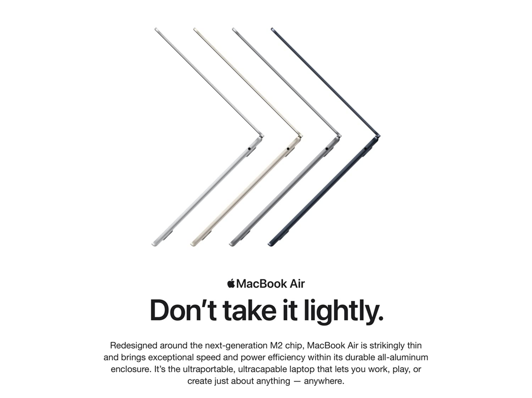 • STRIKINGLY THIN DESIGN — The redesigned MacBook Air is more portable than ever and weighs just 2.7 pounds. It’s the incredibly capable laptop that lets you work, play or create just about anything — anywhere.