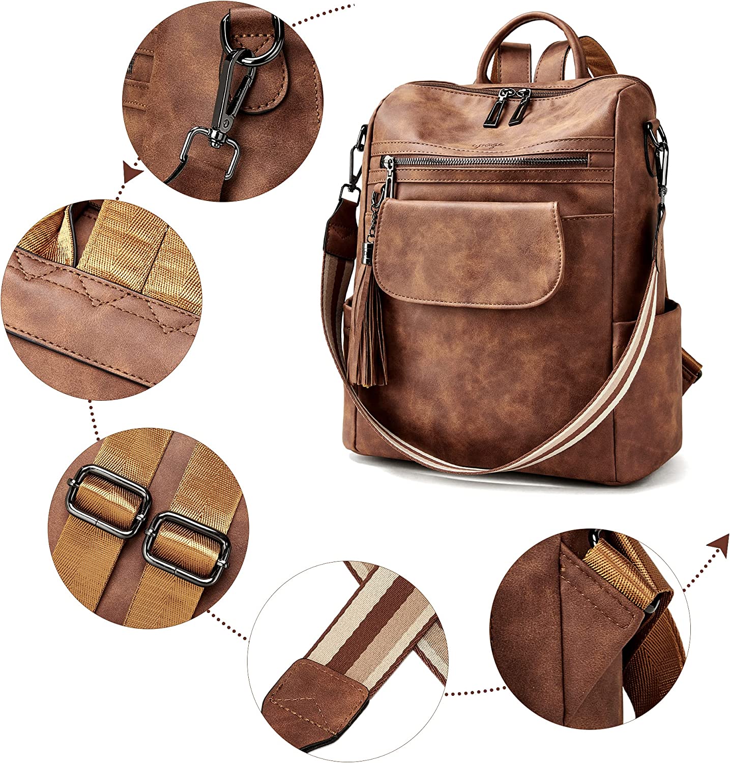 【HIGH-QUALITY MATERIAL】This backpack purse for women is made of high-quality water-resistant, anti-scratch and tear-resistant soft leather, metal accessories, canvas shoulder strap and fabric lining, all these details are fashionable and durable. and there is a cute tassel next to the front pocket.