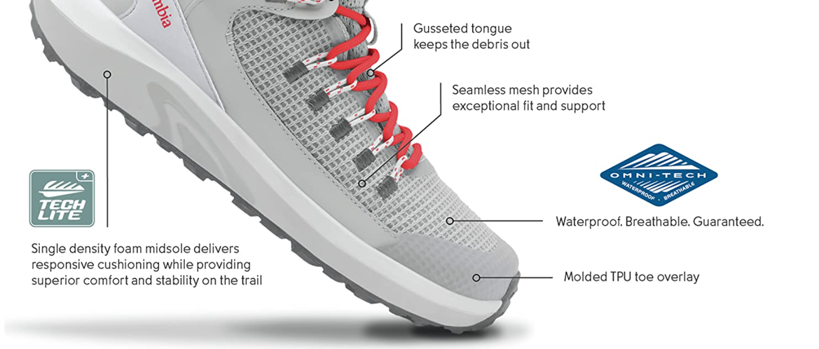 • Please note: Laces and zippers incorporated in Columbia Sportswear Company footwear are not waterproof.