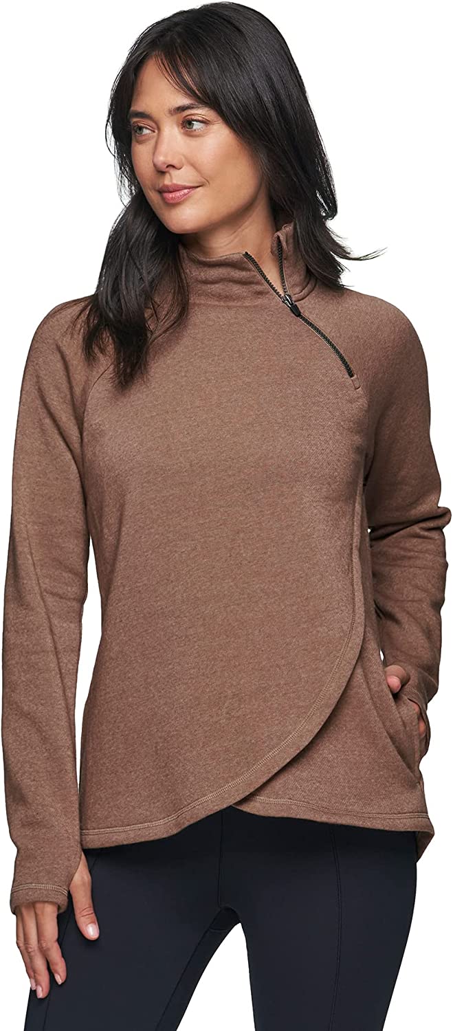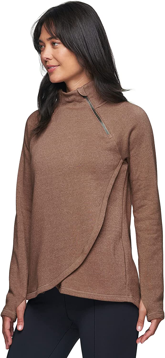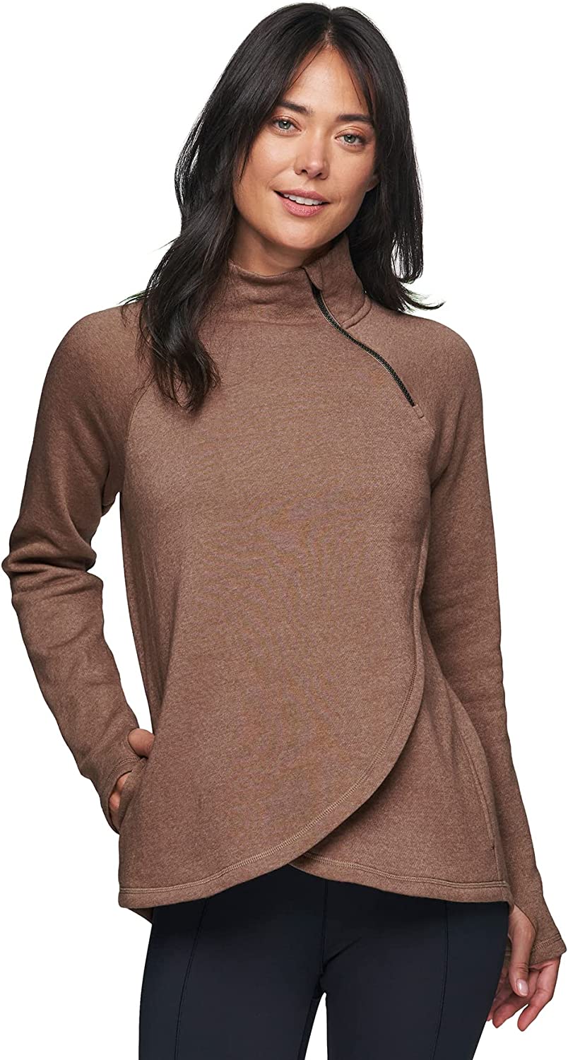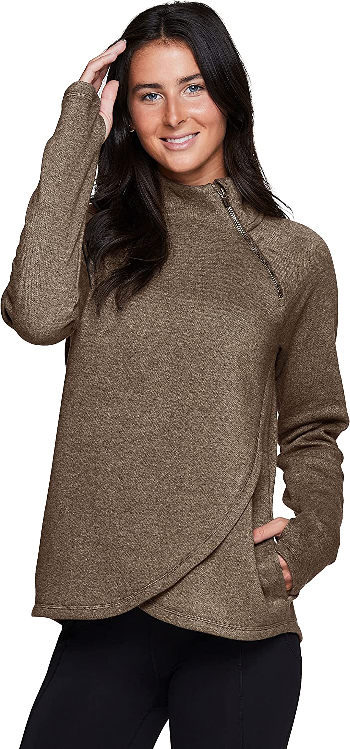 RBX Activewear Women's Fleece Pullover Sweatshirt With Zip Mock Neck, Pockets and Thumb Holes