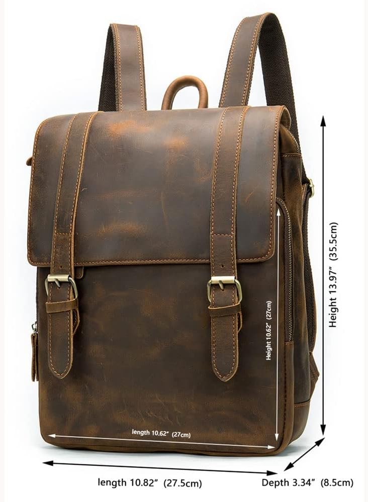 SDFGH Men's Backpack European and American Retro Men's Bag Large Capacity 14 Inch Laptop Travel Backpack (Color : A, Size : 35 * 27 * 8cm)