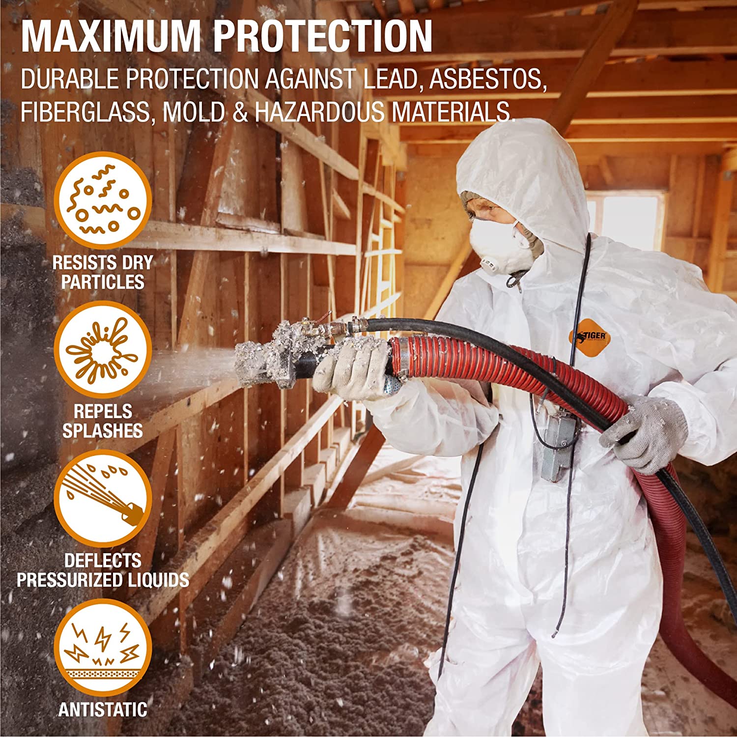 Engineered for maximum protection-Tiger Tough protective apparel helps protect against hazardous particles including lead, asbestos, and mold. Our suits are engineered for industrial-grade protection, range