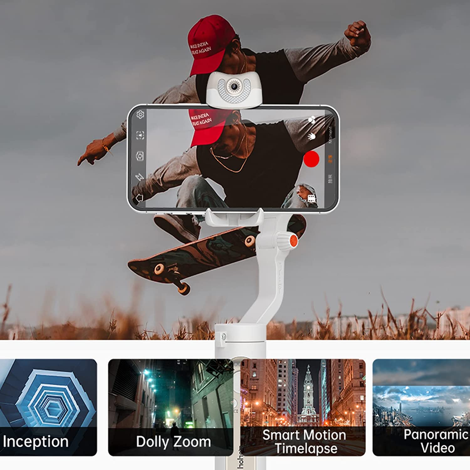 【Creative & Rich App Features】 Equipped with the user-friendly APP, Hohem iSteady V2 smartphone gimbal has solved this for you. Within the Hohem Pro APP, you can choose from 7 one-tap templates like inception, dolly zoom, timelapse, and panoramas. You can also switch 4 following modes (pan&tilt follow, pan follow, all follow/lock) of the gimbal stabilizer to satisfy all your filming needs.