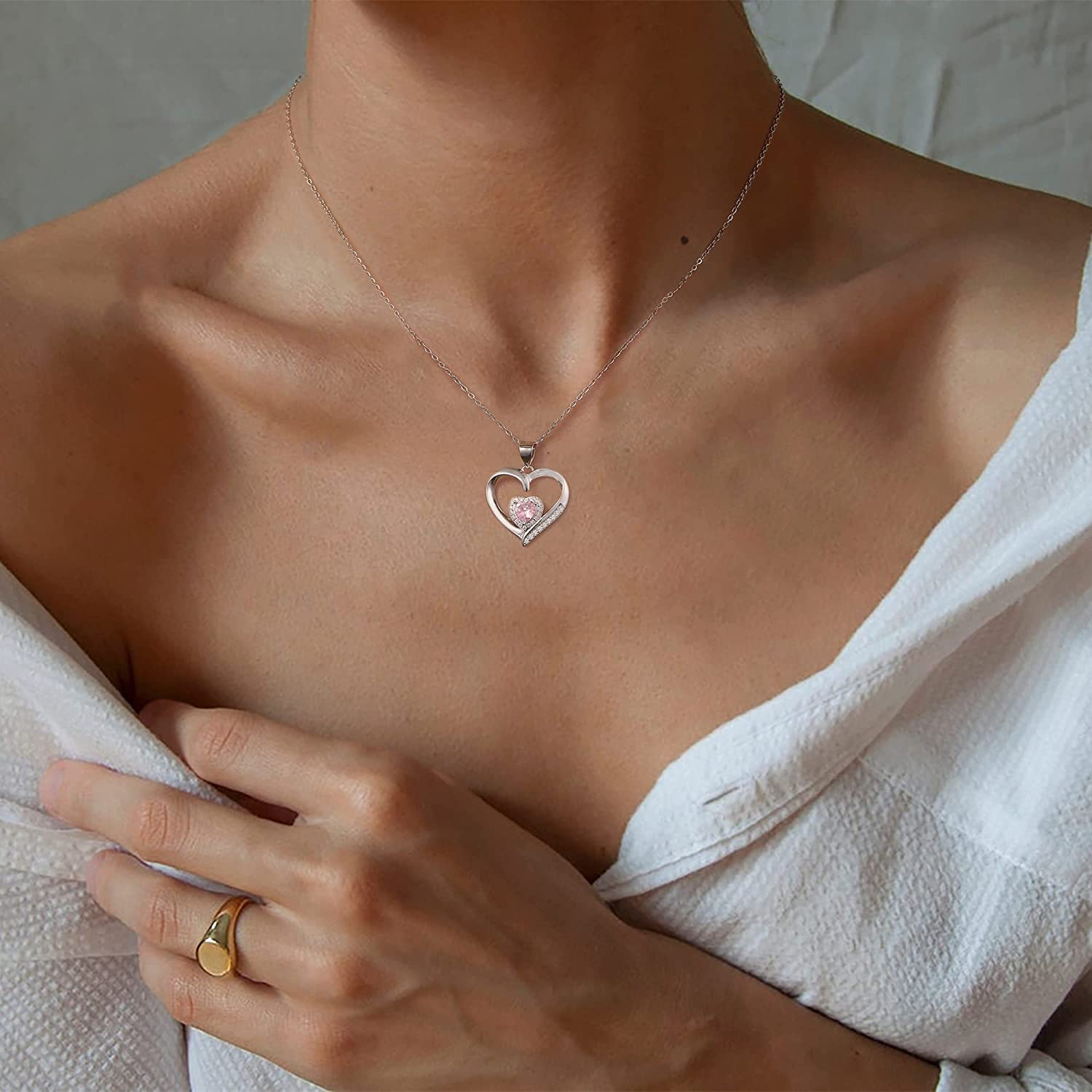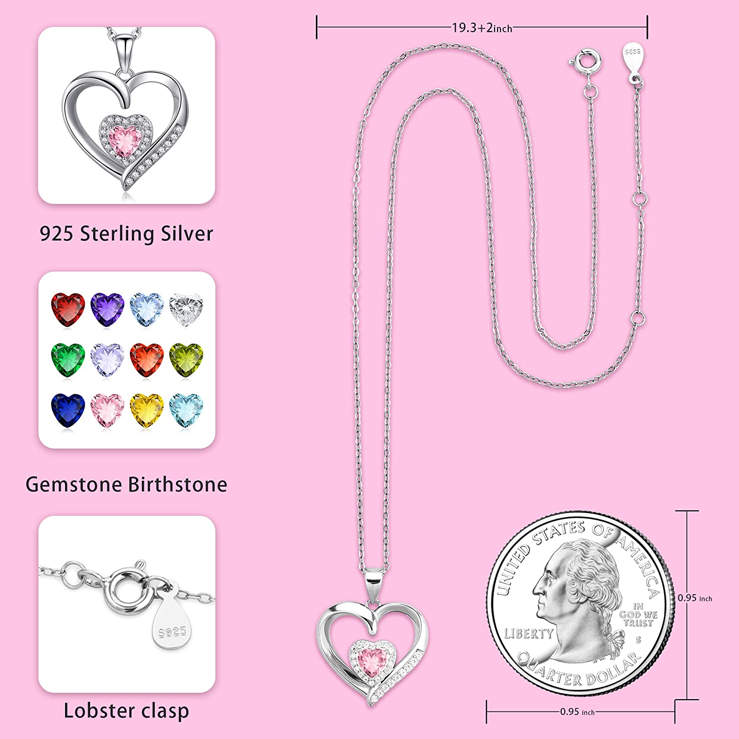 • S925 STERLING SILVER Necklace: Heart pendant necklace made of S925 sterling silver, with birthstone is an unique and heartfelt fashionable jewelry beautifully packaged and ready for gift giving.