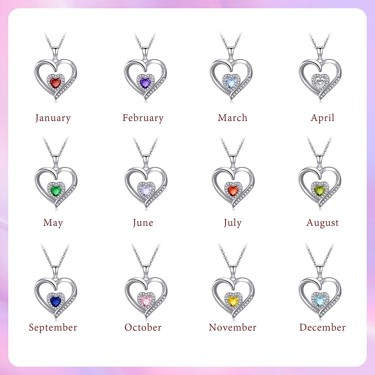 GLIVEOR Heart Birthstone Necklace for Women, S925 Sterling Silver Necklace Birthstone Necklace Heart Necklace for Women Teen Girls Birthday Jewelry Gifts for Women Teen Girls