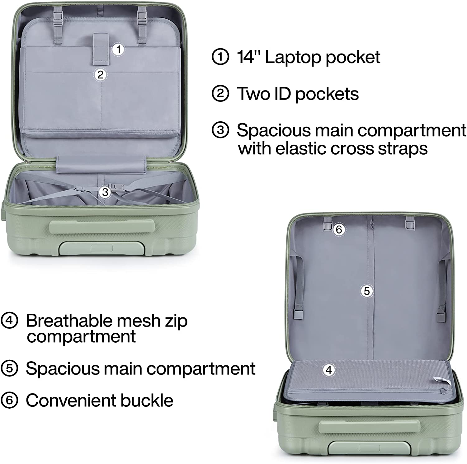 Hanke Upgrade Carry On Luggage Airline Approved, 20'' Lightweight Hardside Suitcase PC Hardshell Luggage with Spinner Wheels & TSA Lock,Carry-On 20-Inch(Bamboo Green)