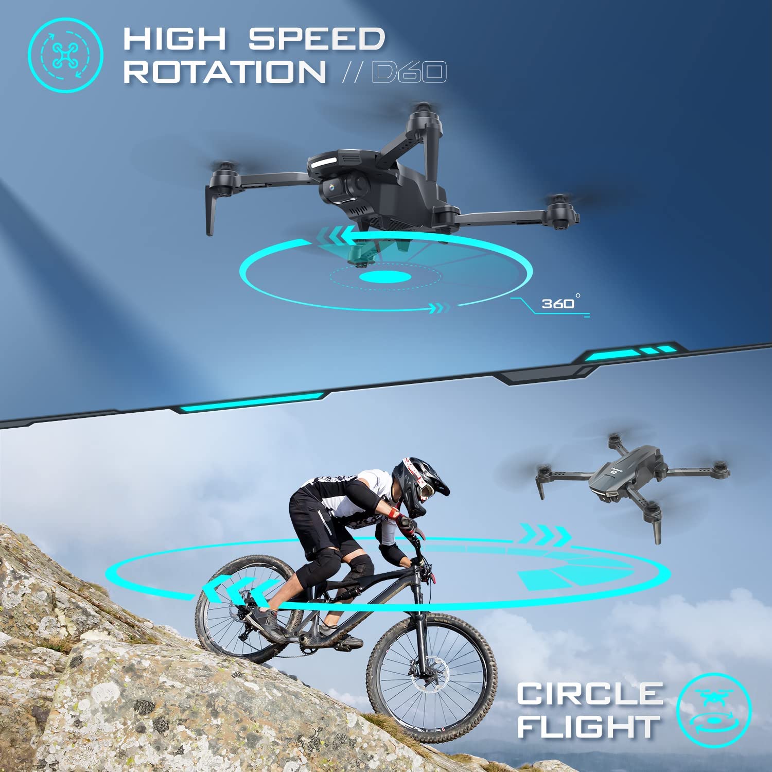 A royal road to become pro pilot - D60 is an excellent drone for beginners. These beginner-friendly functions: Altitude-Hold, Emergency Stop, Headless Mode, One Key Start/Land, Trim, 3 different speeds... You can also add some interesting touches to your aerial videos via functions like Circle and Auto Spin.The only limitation is your imagination!