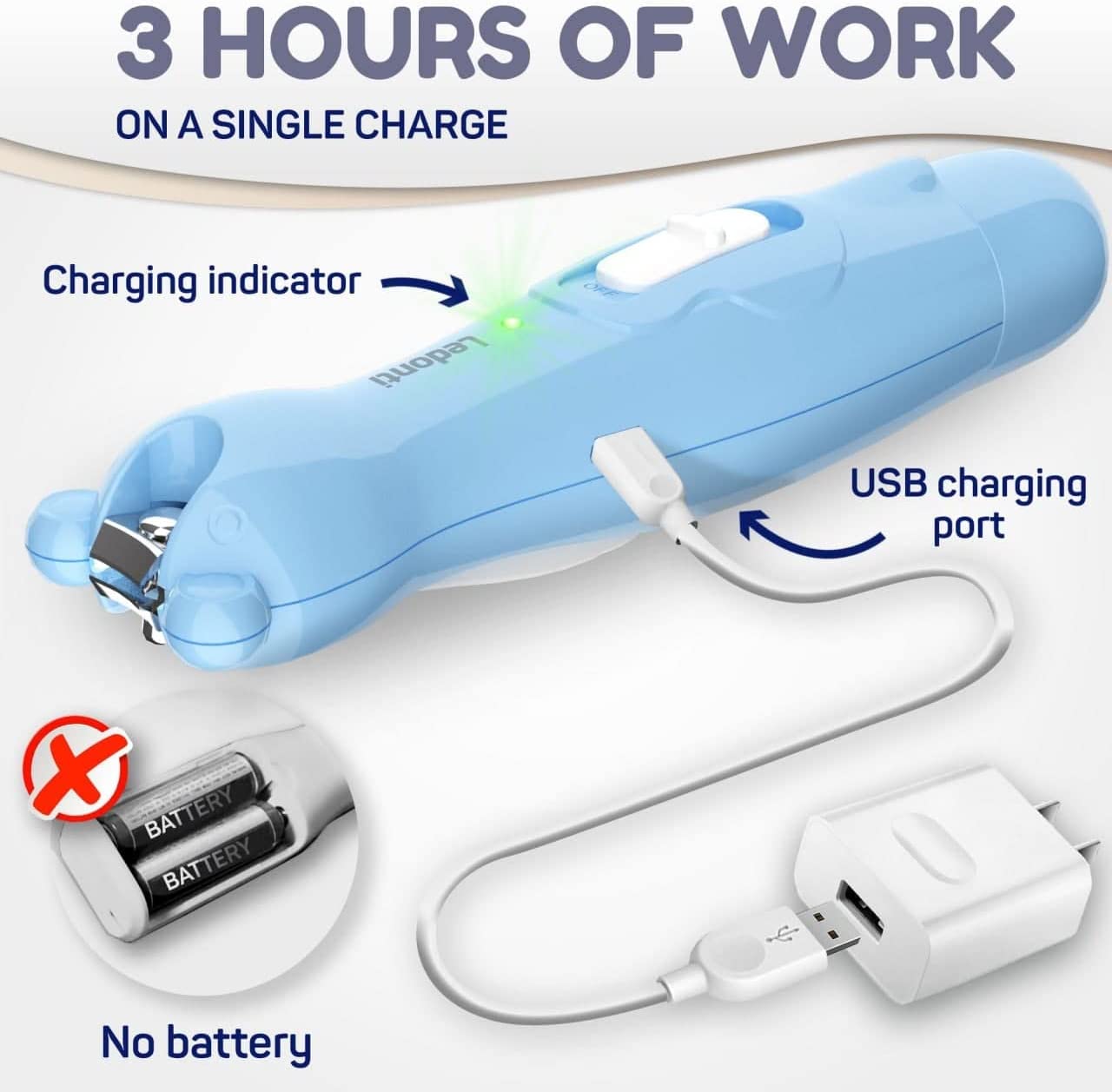 • NOISELESS & LED LIGHTED: No more guessing while grinding your baby's nails. The in-built LED light guarantees safe trimming and ultimate visibility even when the lights are out. Nothing will trouble your kid's sensitive sleep due to the whisper-quiet motor (less than 35 DB).